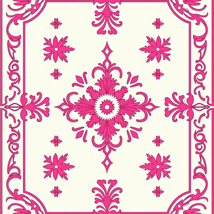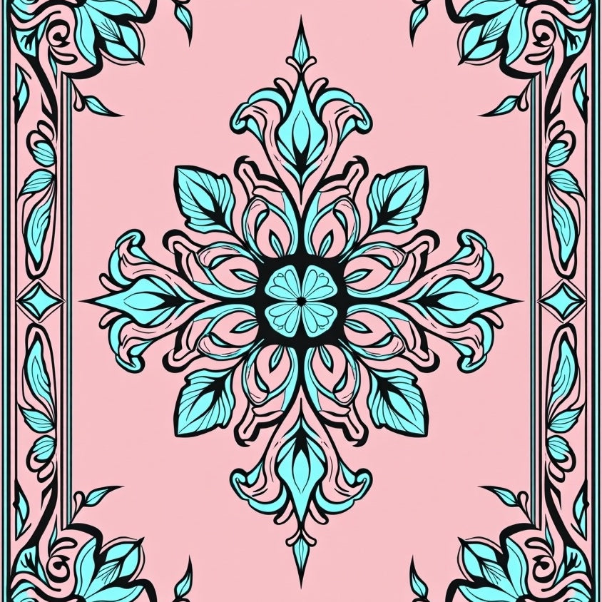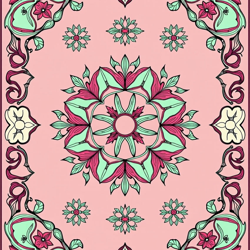 Botanical Medallion Featuring Delicate Floral Motifs(Pink)