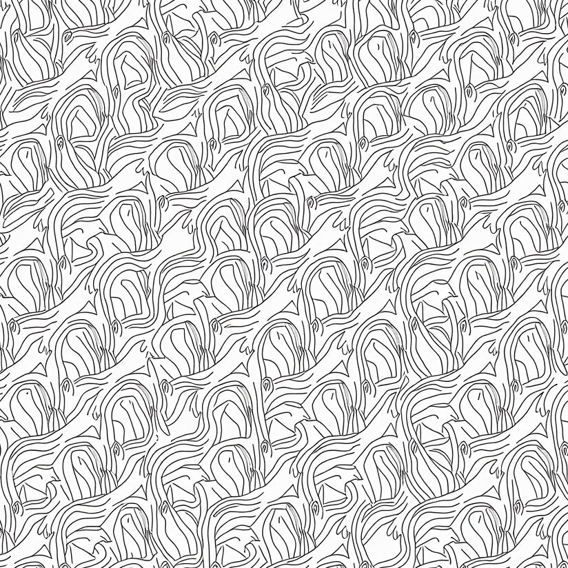 Noir Petal Mosaic Interlocking Floral Abstract Arrangement(Black)