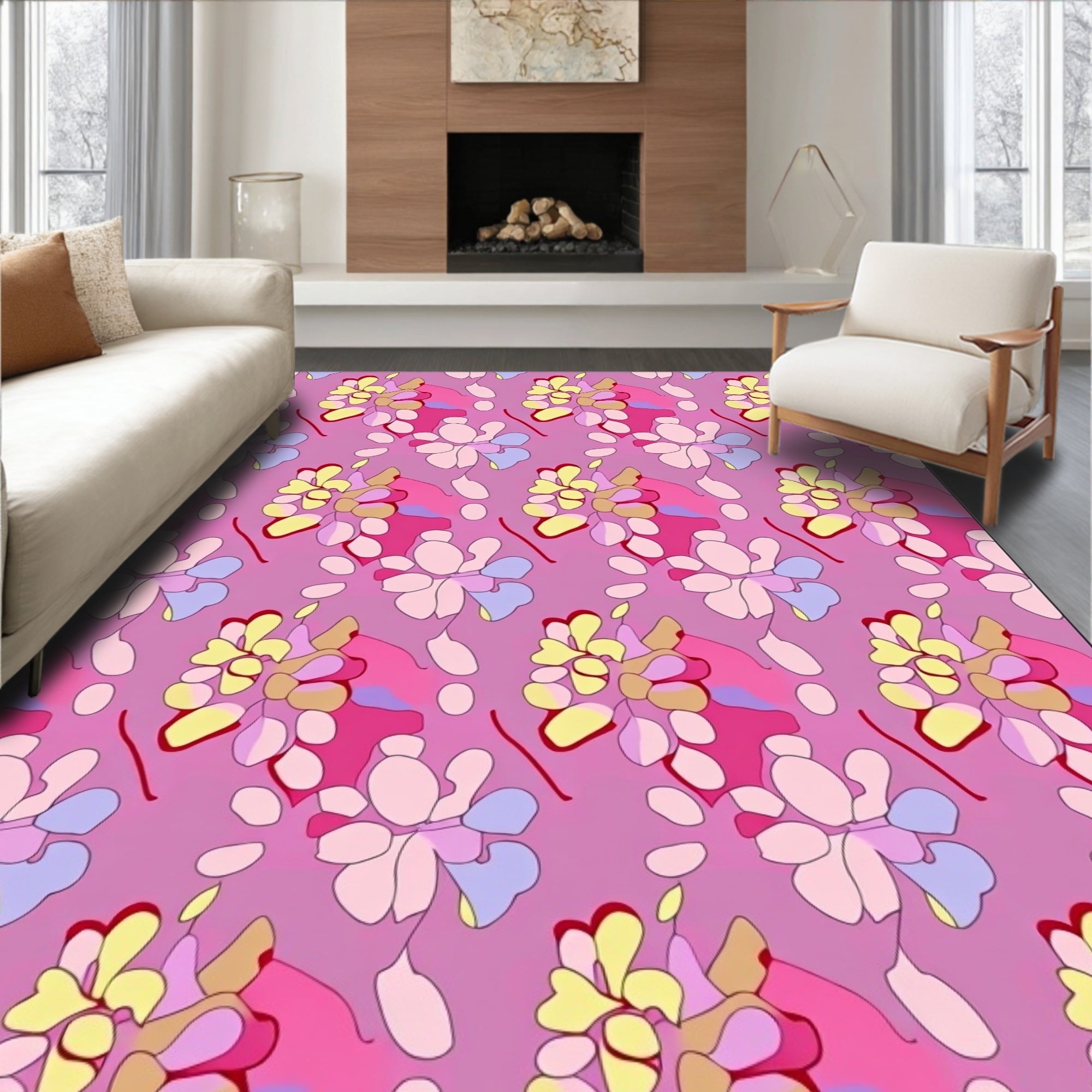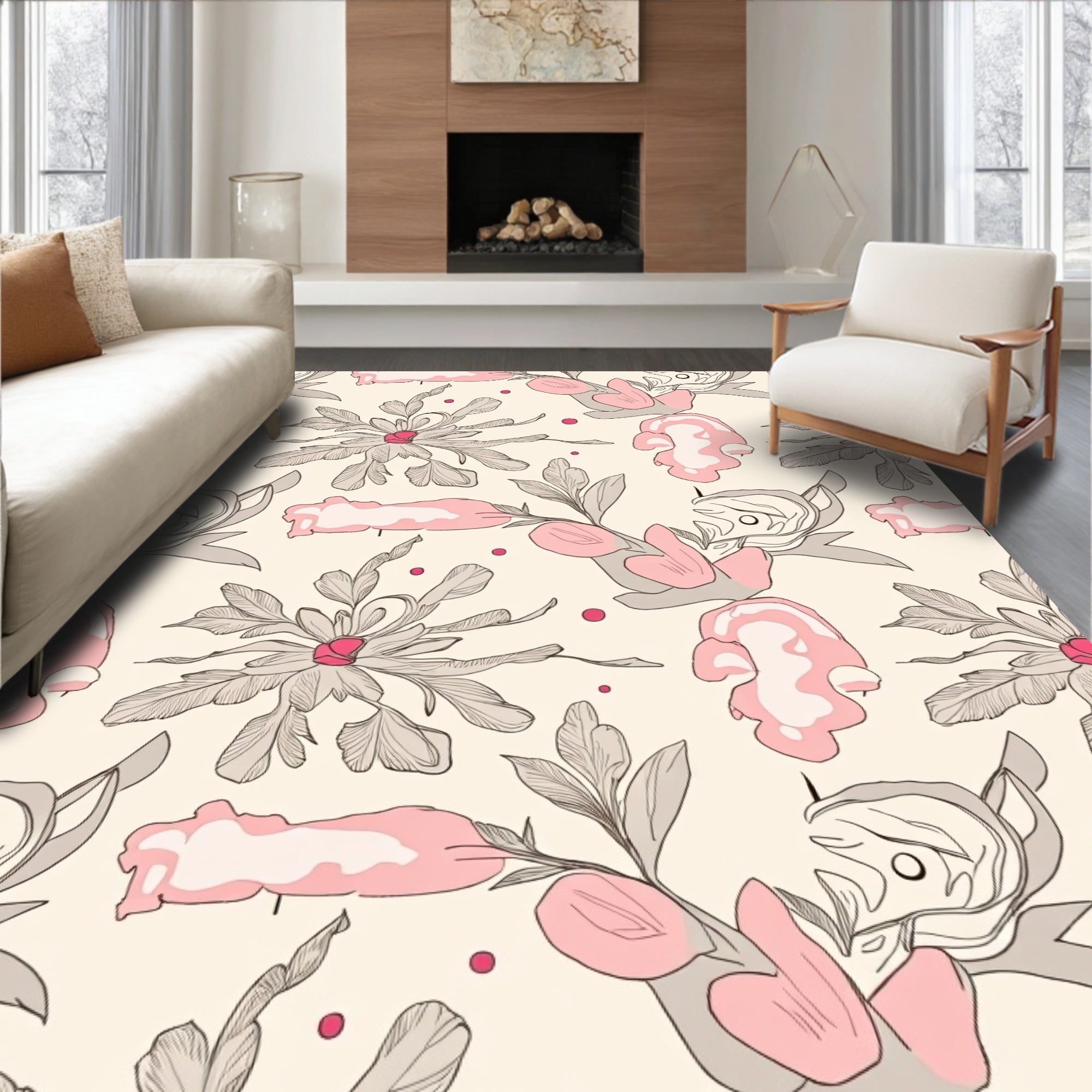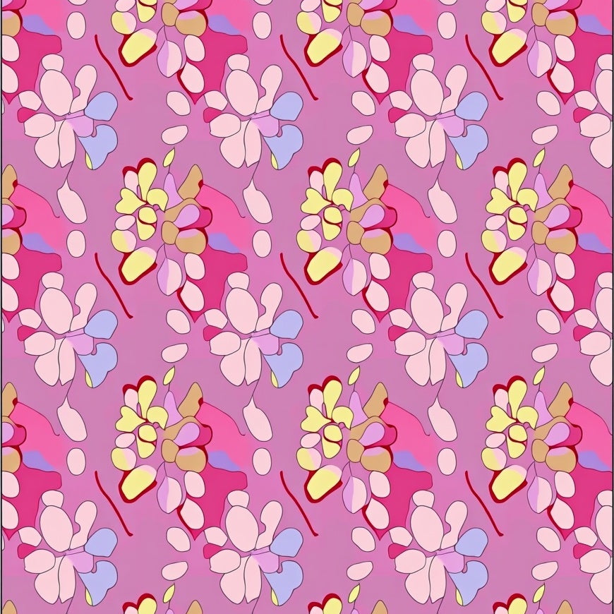 Modern Blossom Tapestry with Abstract Florals and Subtle Metallic Highlights(Pink)