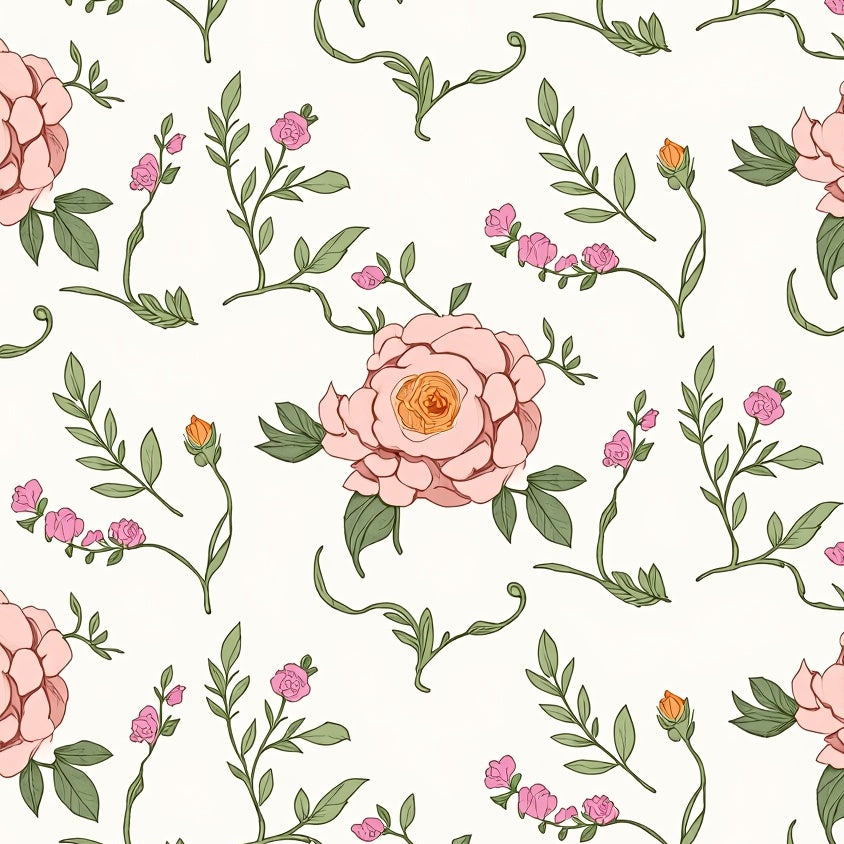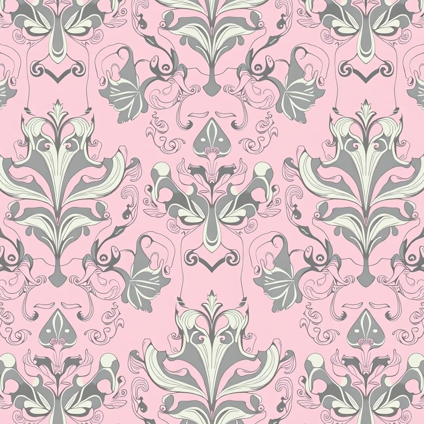 Classic Floral Damask Motif Enhanced by Subtle Pastel Filigree Detailing(Pink)