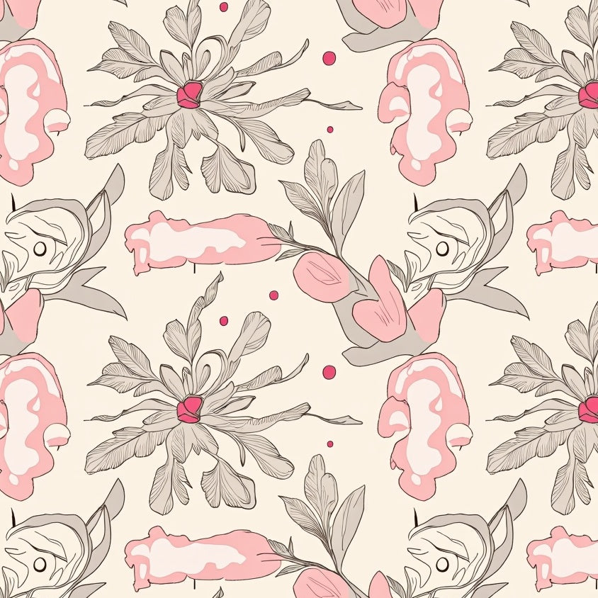 Delicate Blush and Taupe Floral Mosaic with Interlocking Petal Motifs(Pink)