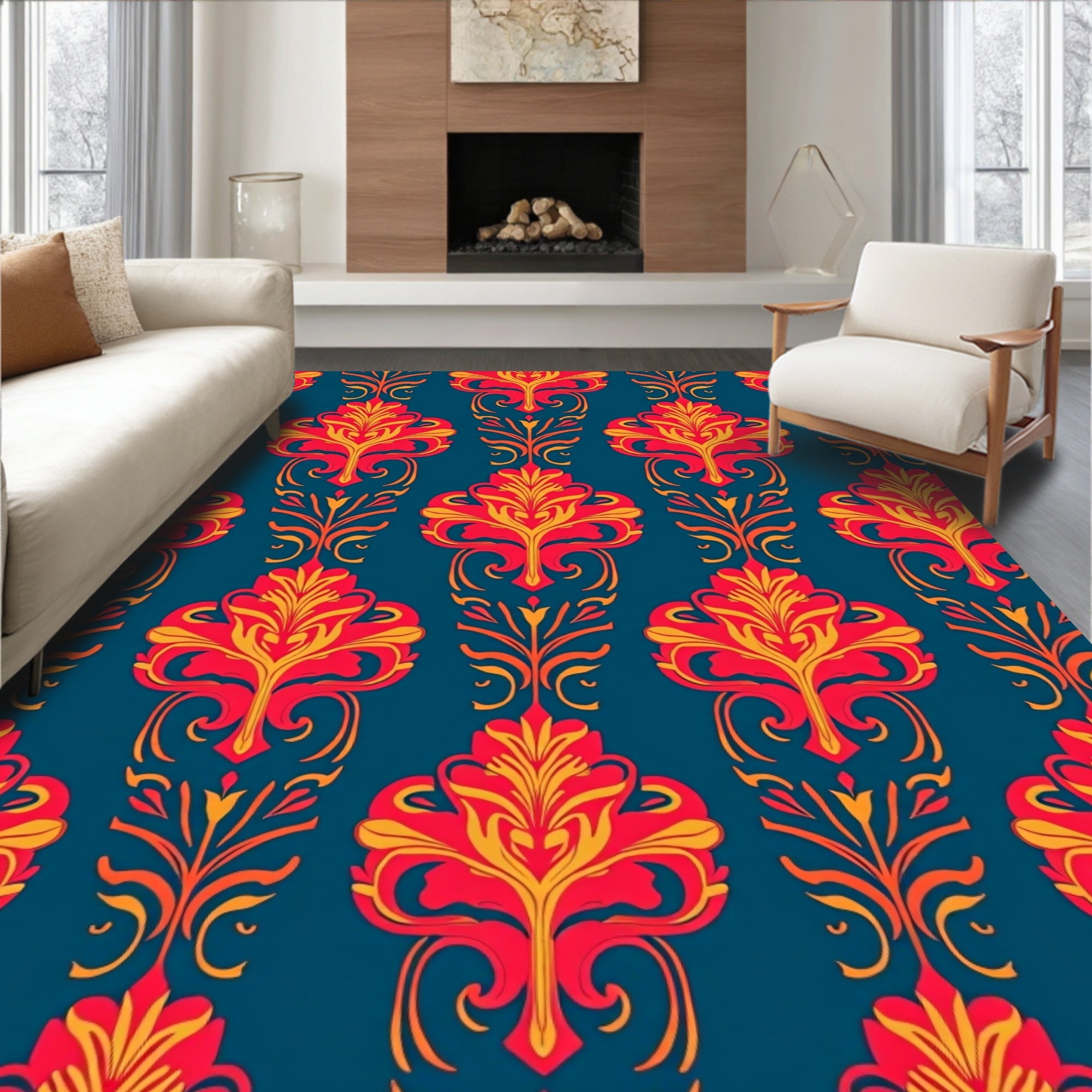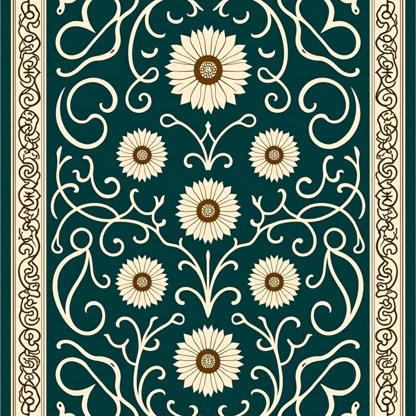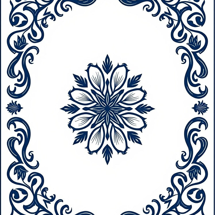 Elegant Vintage Floral Tapestry with Intricate Petal Scrolls and Vine Motifs(Blue)