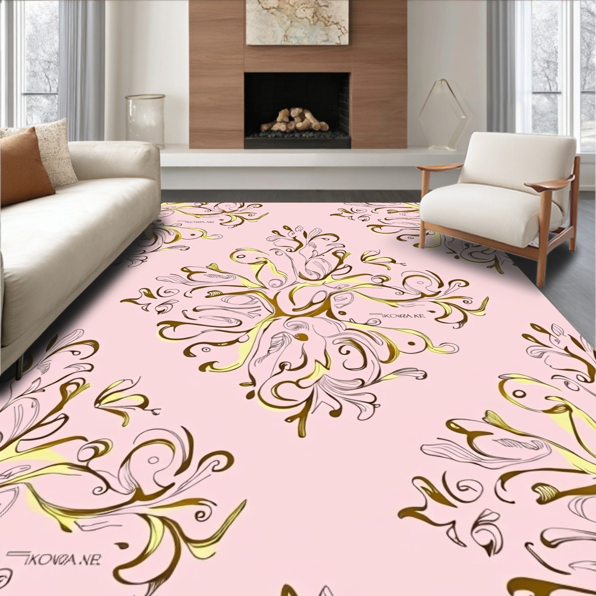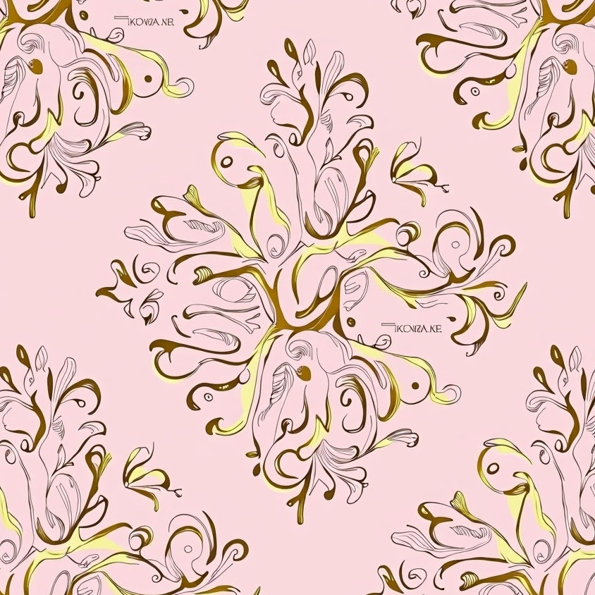 Modern Floral Scroll with Gilded Baroque Highlights(Pink)