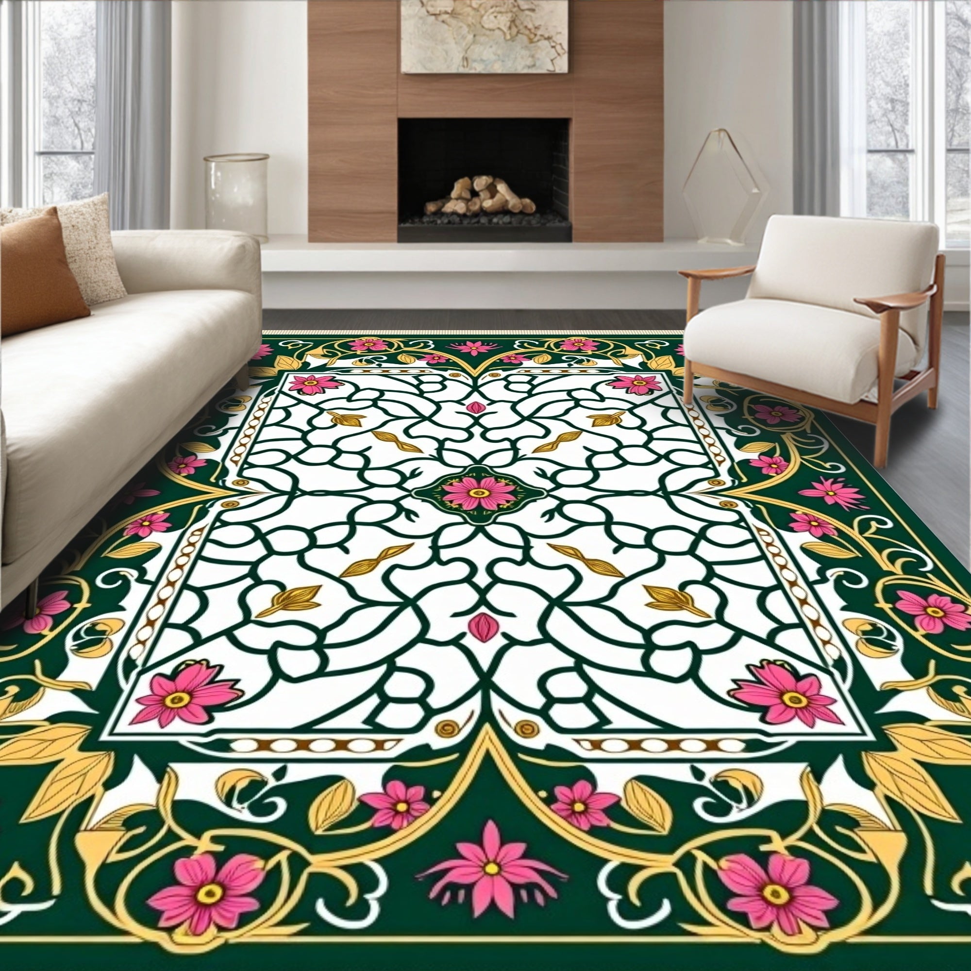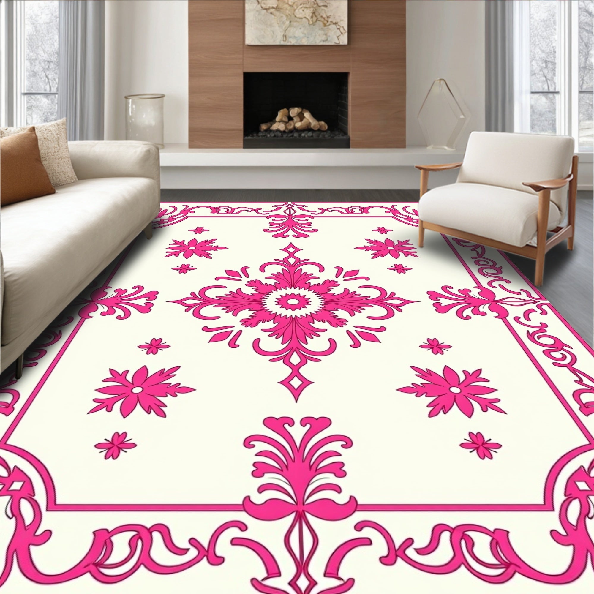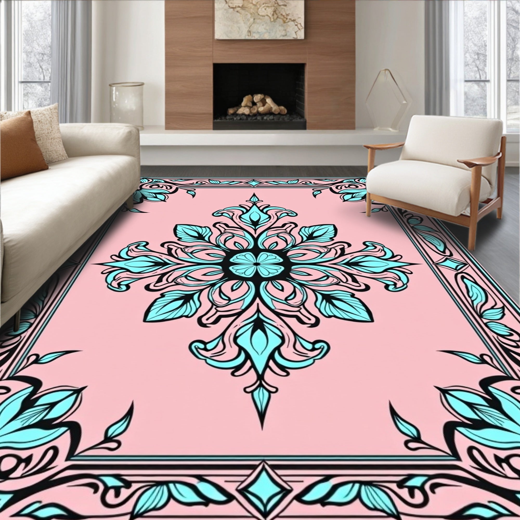 Charming Floral Medallion with Ornate Leaf Motifs(Pink)