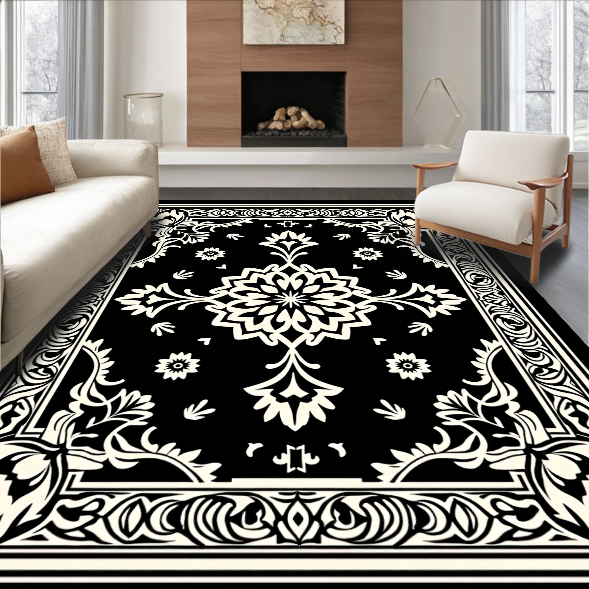 Monty Elegant Floral Medallion Vintage Distressed Accent(Black)