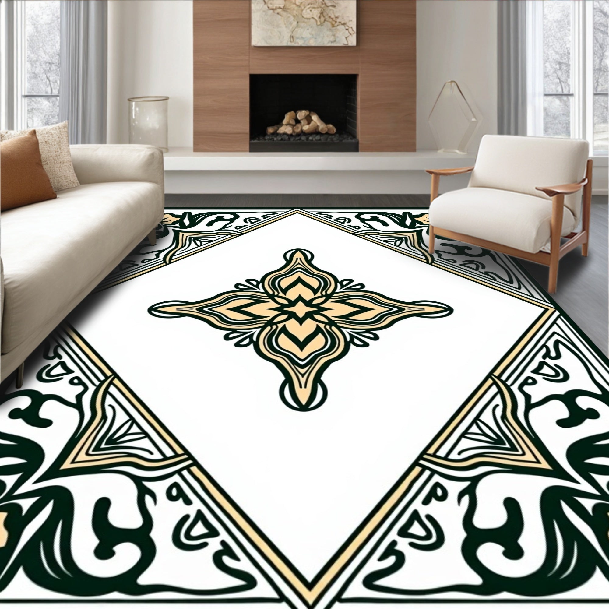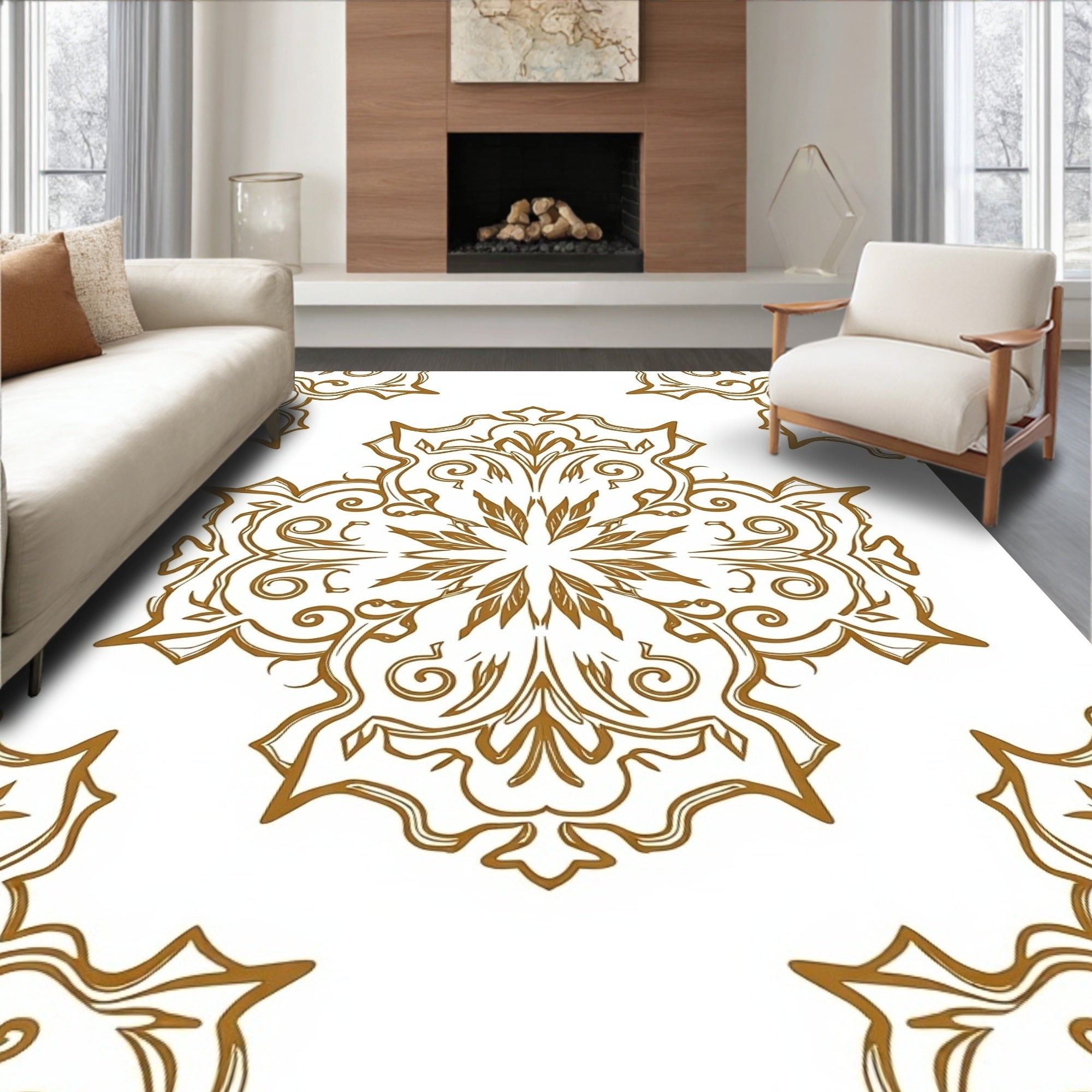 Symmetrical Interlocking Lattice with Stylized Ethnic Floral(Beige)