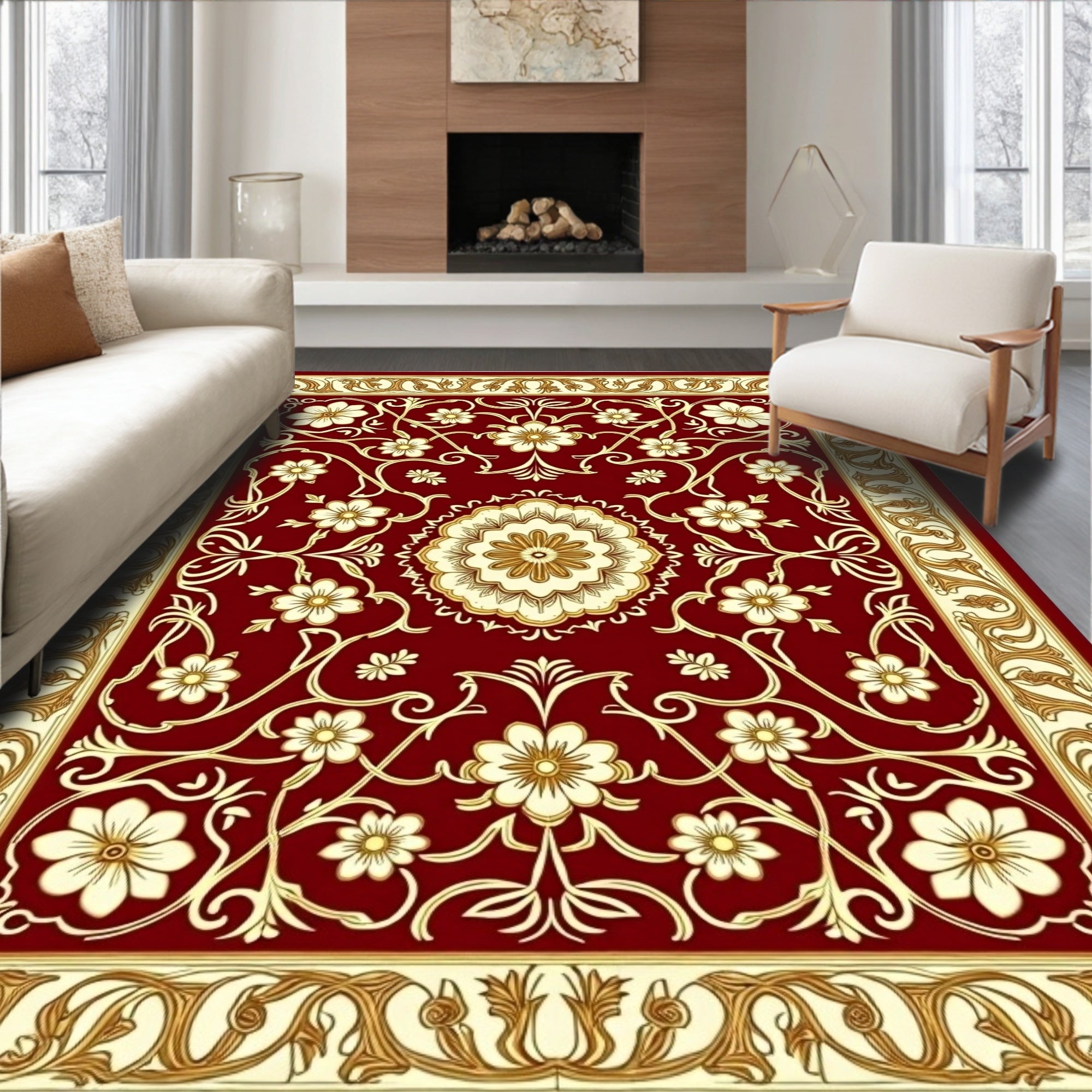 Botanical Floral Symmetrical Interwoven Decorative(Red)