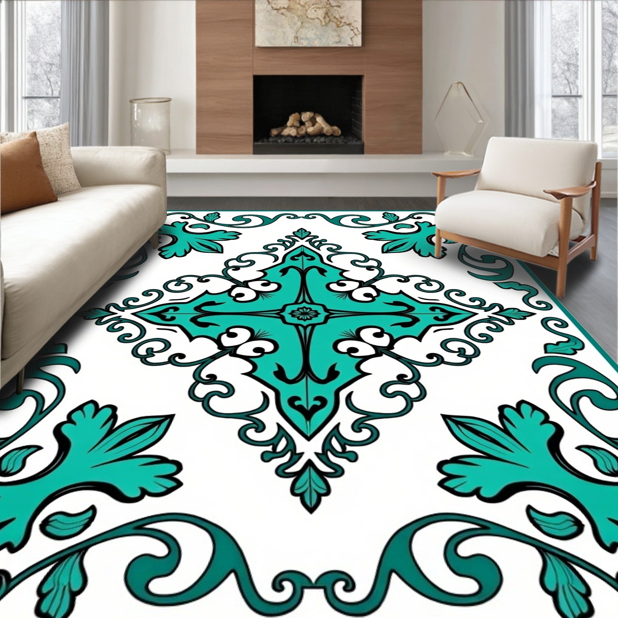 Ethereal Damask Floral Ornate Revival(Teal)
