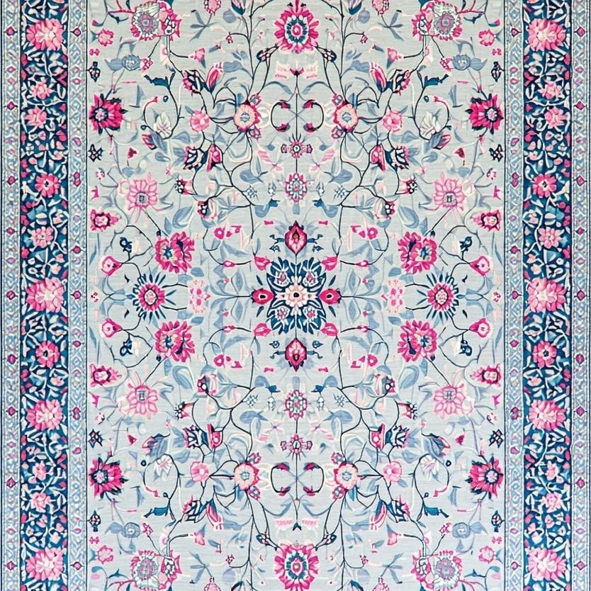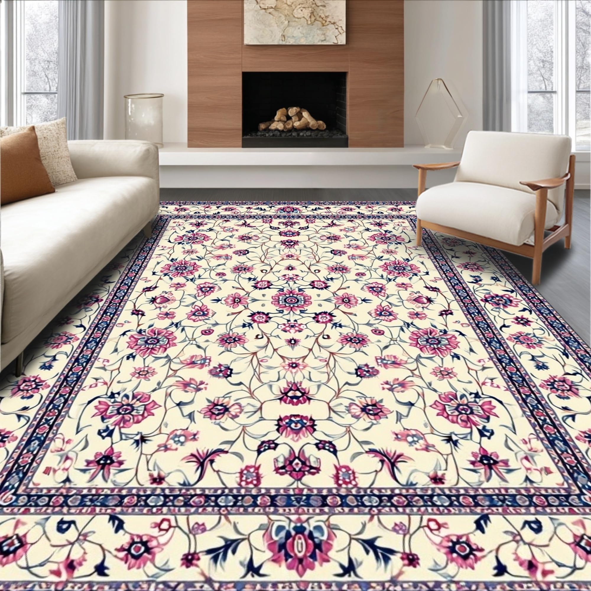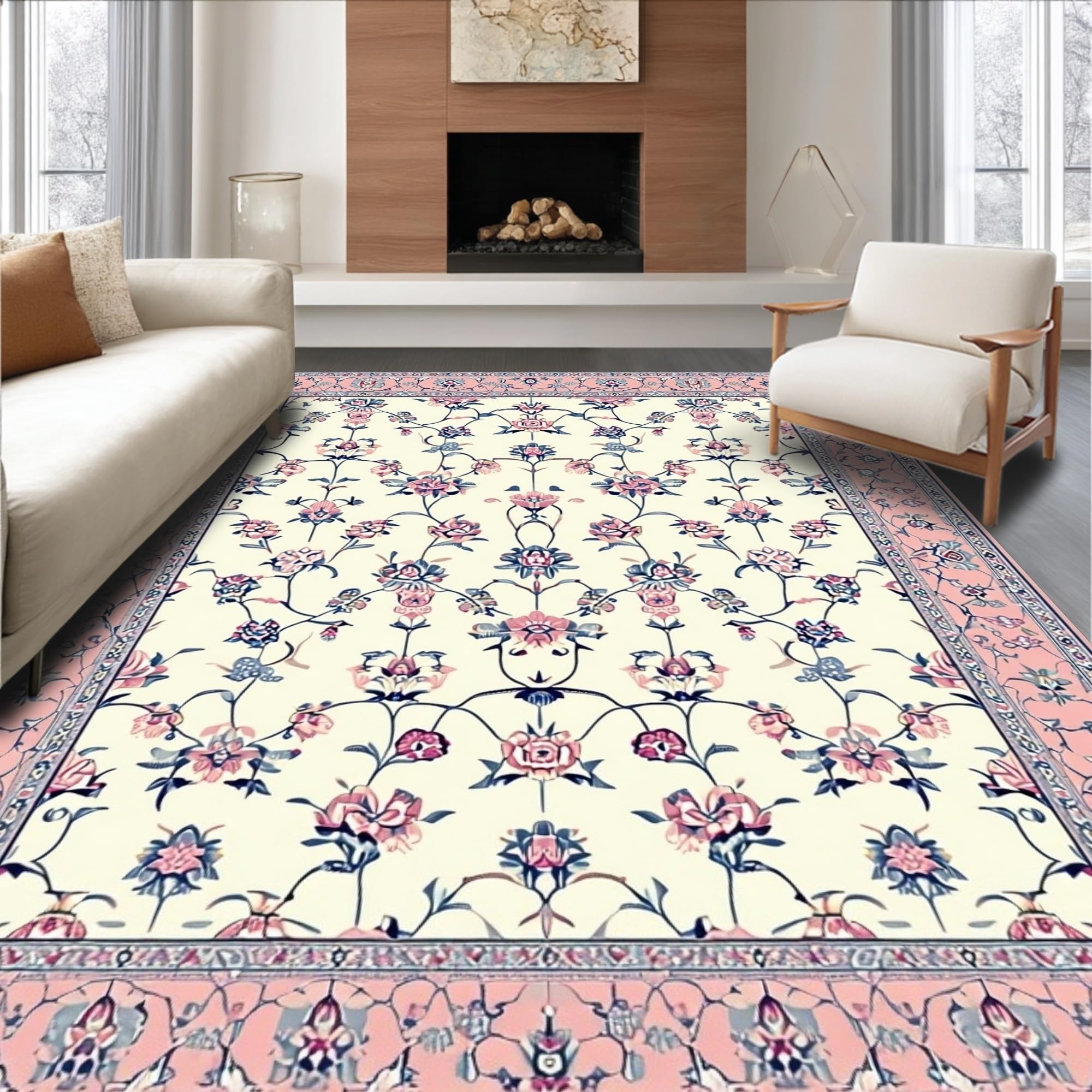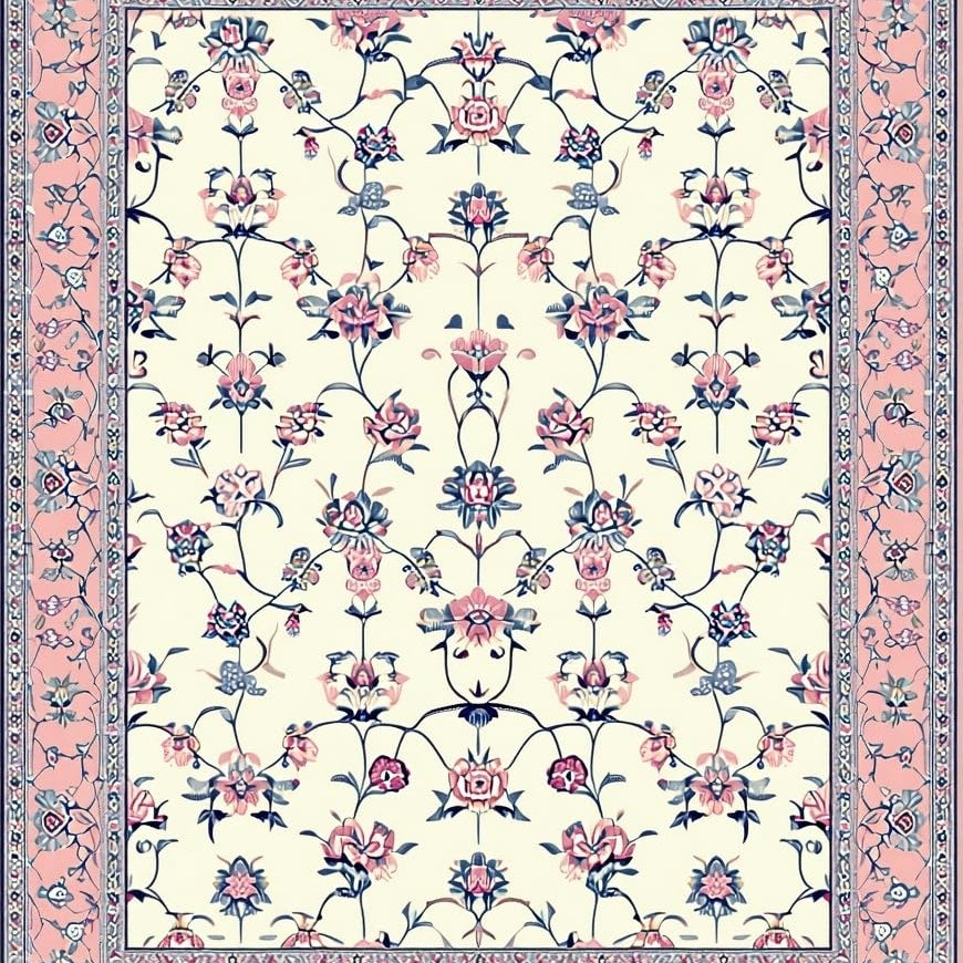 Elegant Blush Pink Low Pile with Mauve Floral and Geometric Fusion(Pink)
