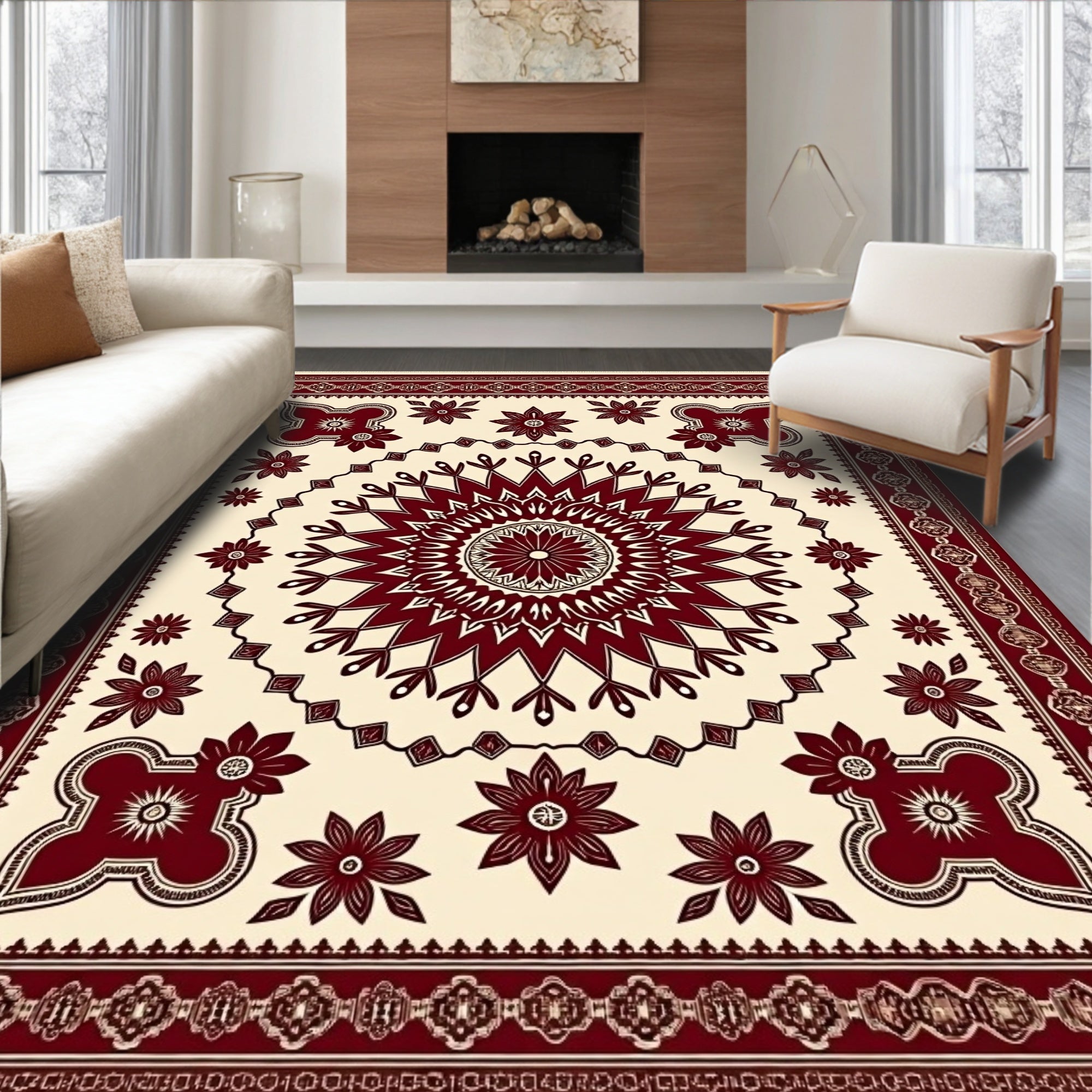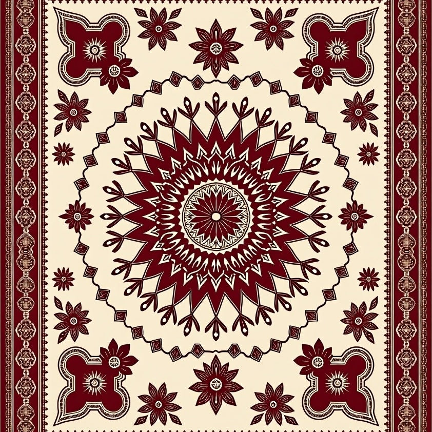 Vintage Medallion Heritage Boho Floral Ornate Symmetrical Décor(Red)