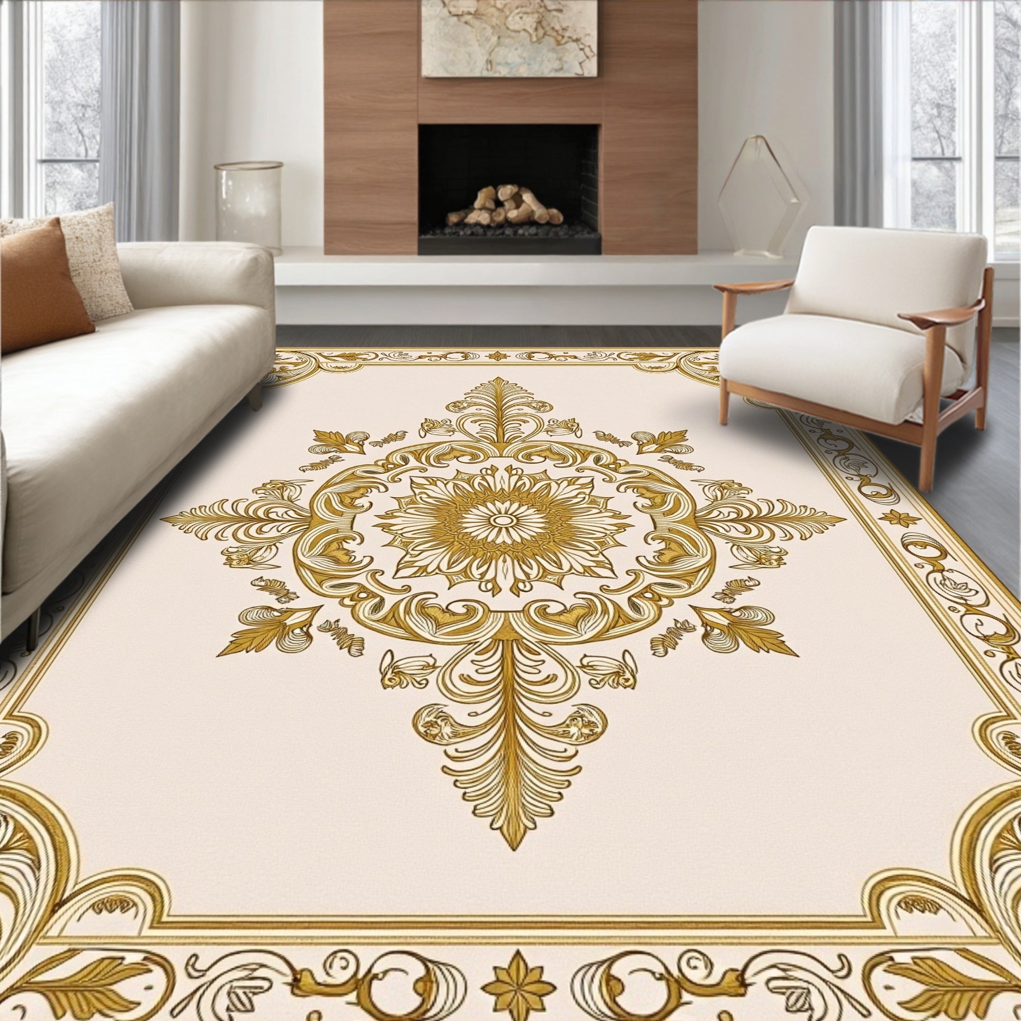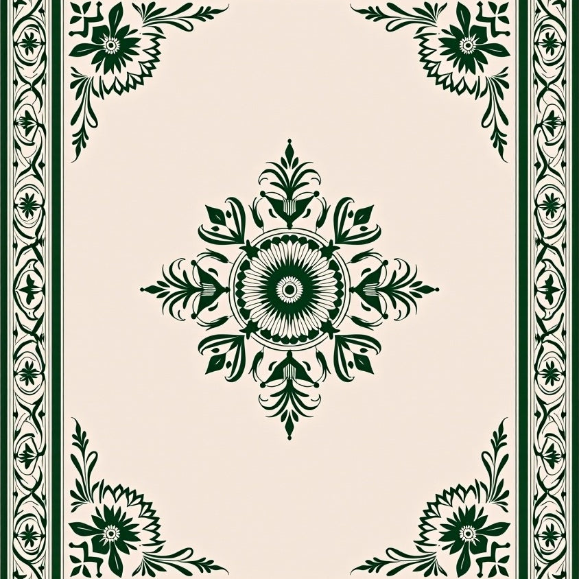 Medallion with Intricate Floral Motifs Central Design(Beige)