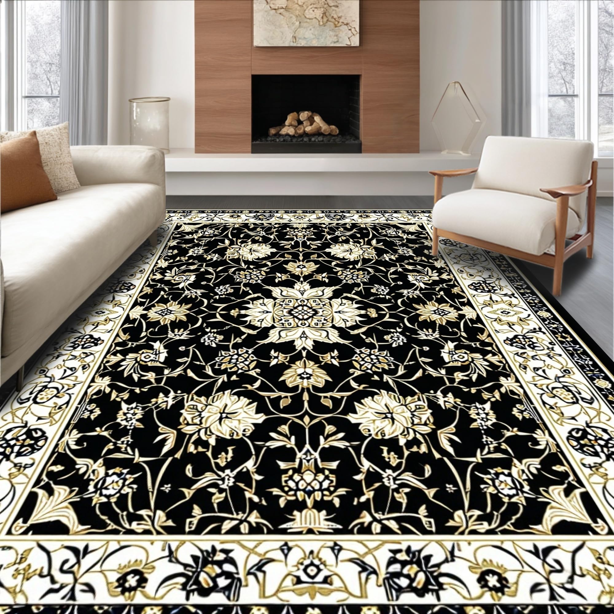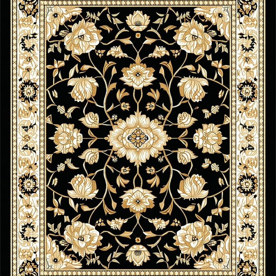 Dramatic Black and Gold Floral Fusion(Black)