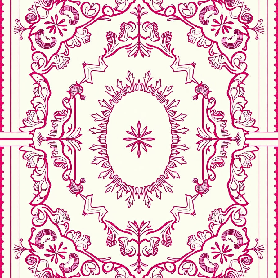 Boho Lattice Featuring Stylized Florals and Delicate Line Detailing(Pink)