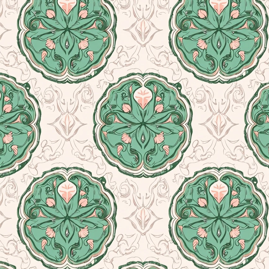 Inspired Interlocking Floral Medallion with Blush Highlights(Green)