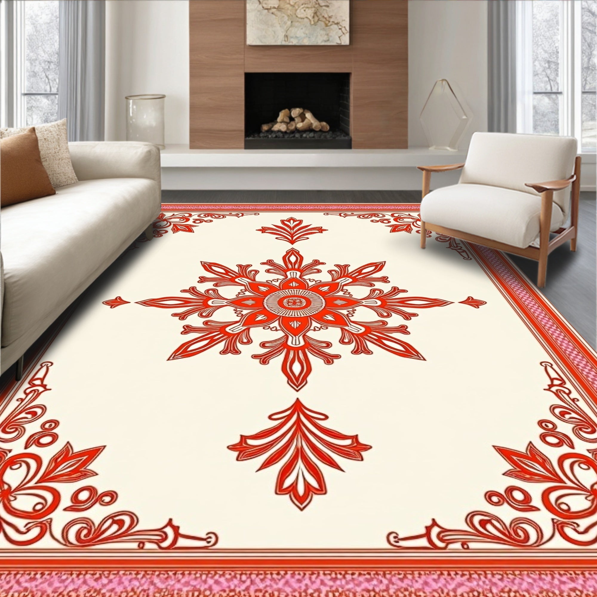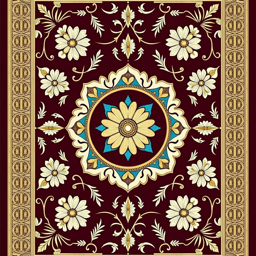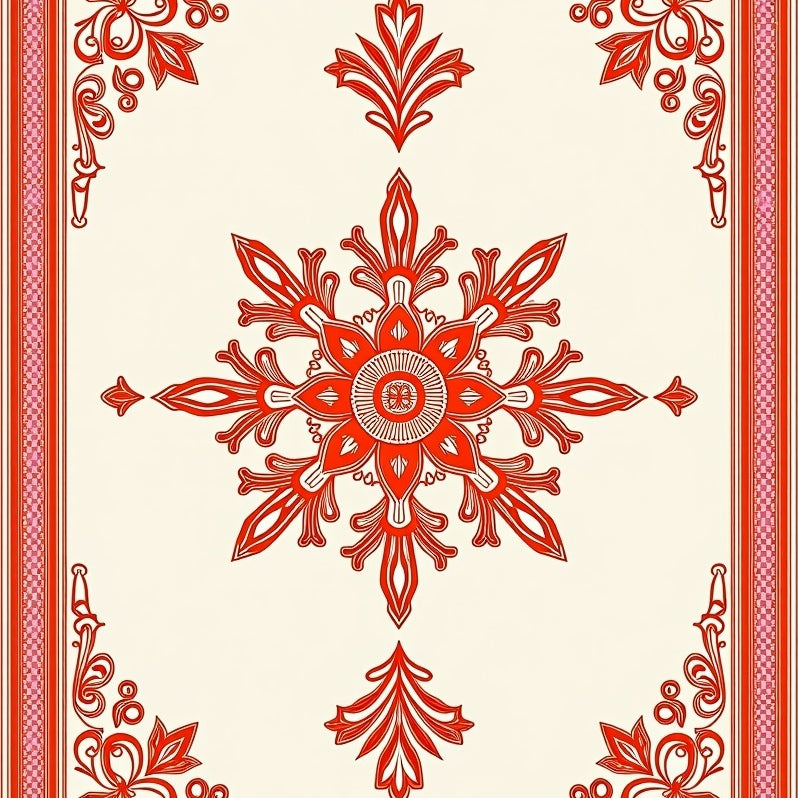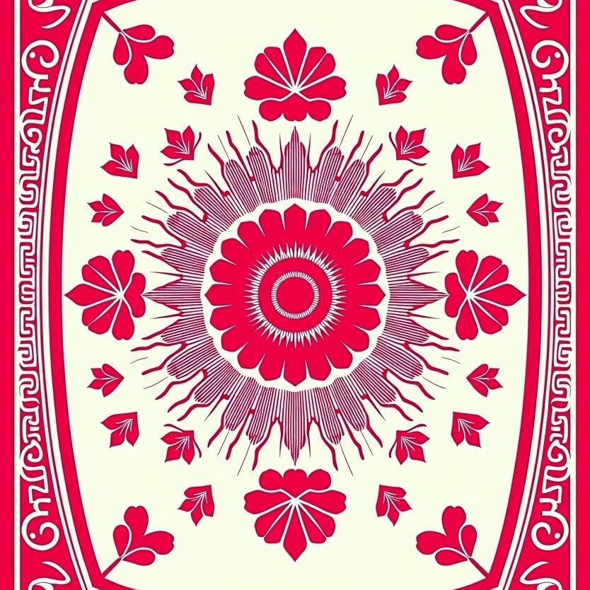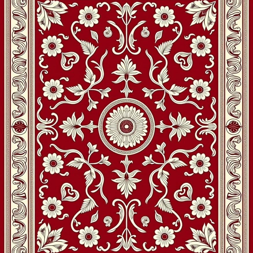 Vintage Medallion with Intricate Floral Borders(Red)
