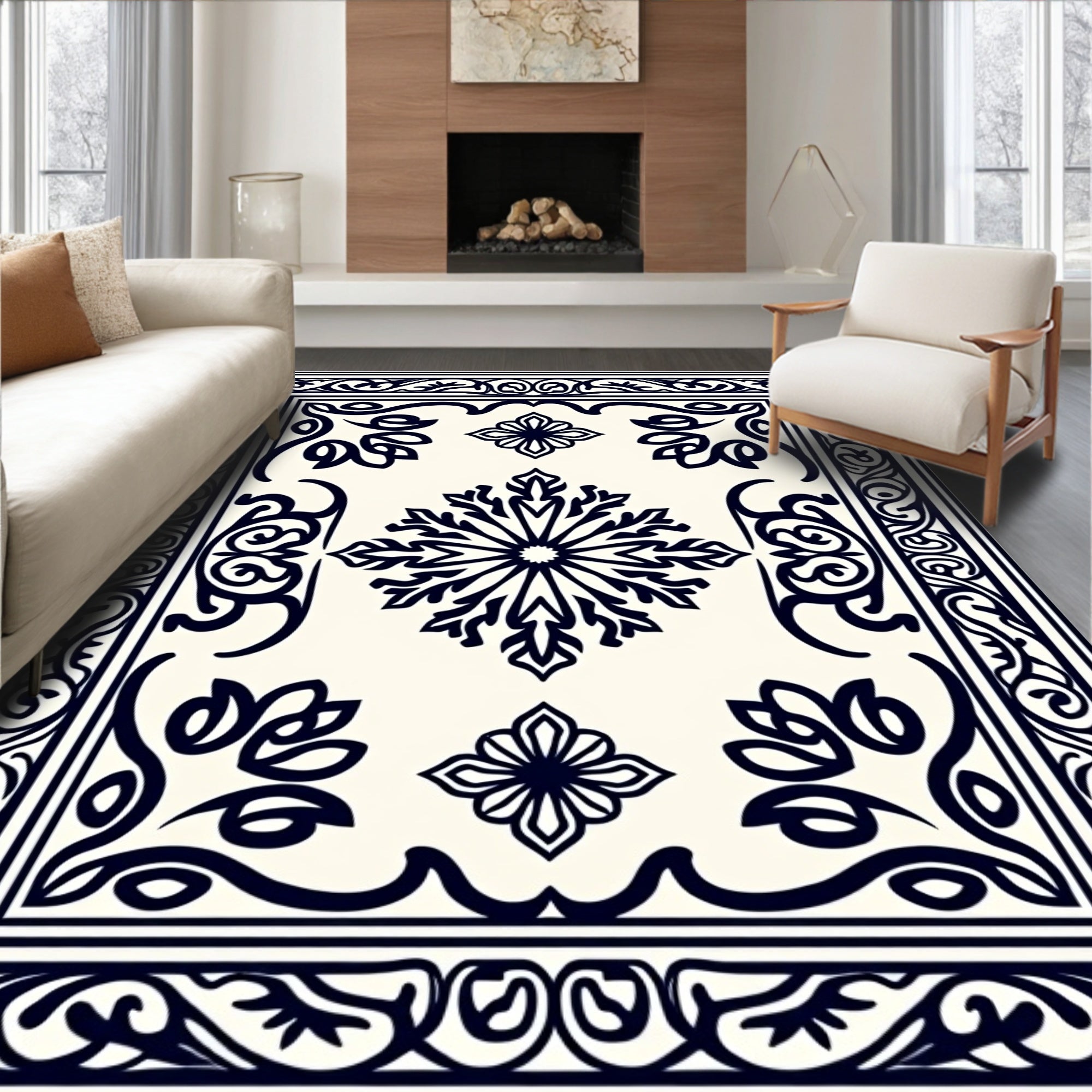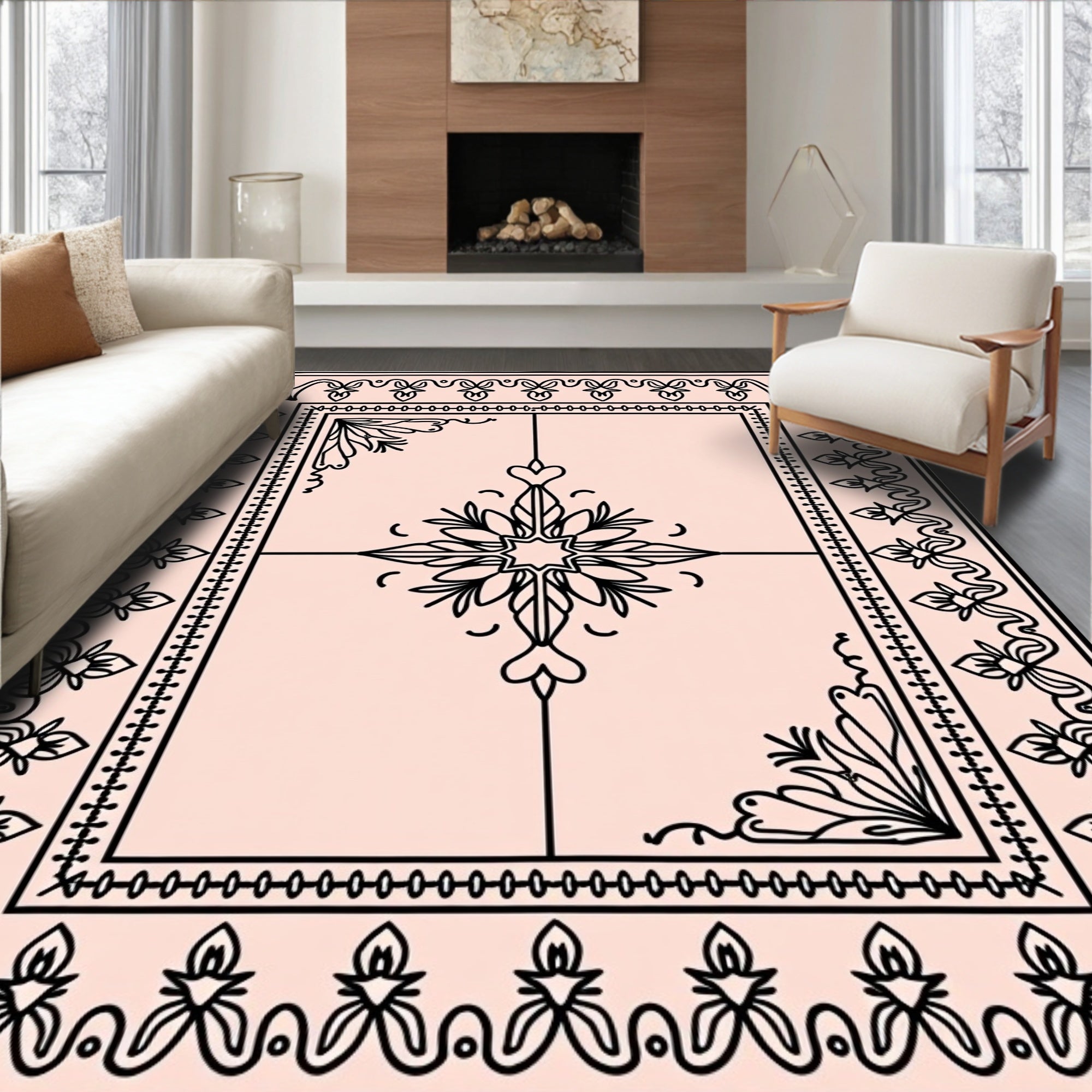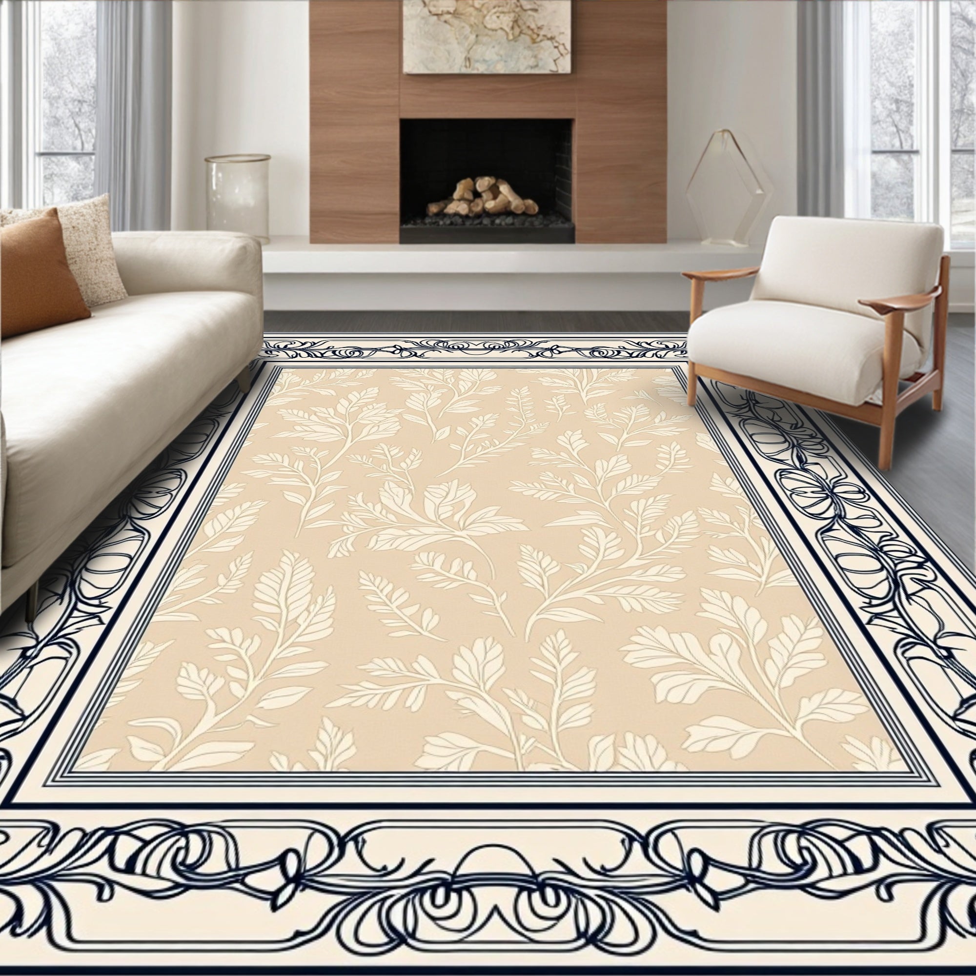 Timeless Artisan Crafted Symmetrical Floral Arabesque(Beige)