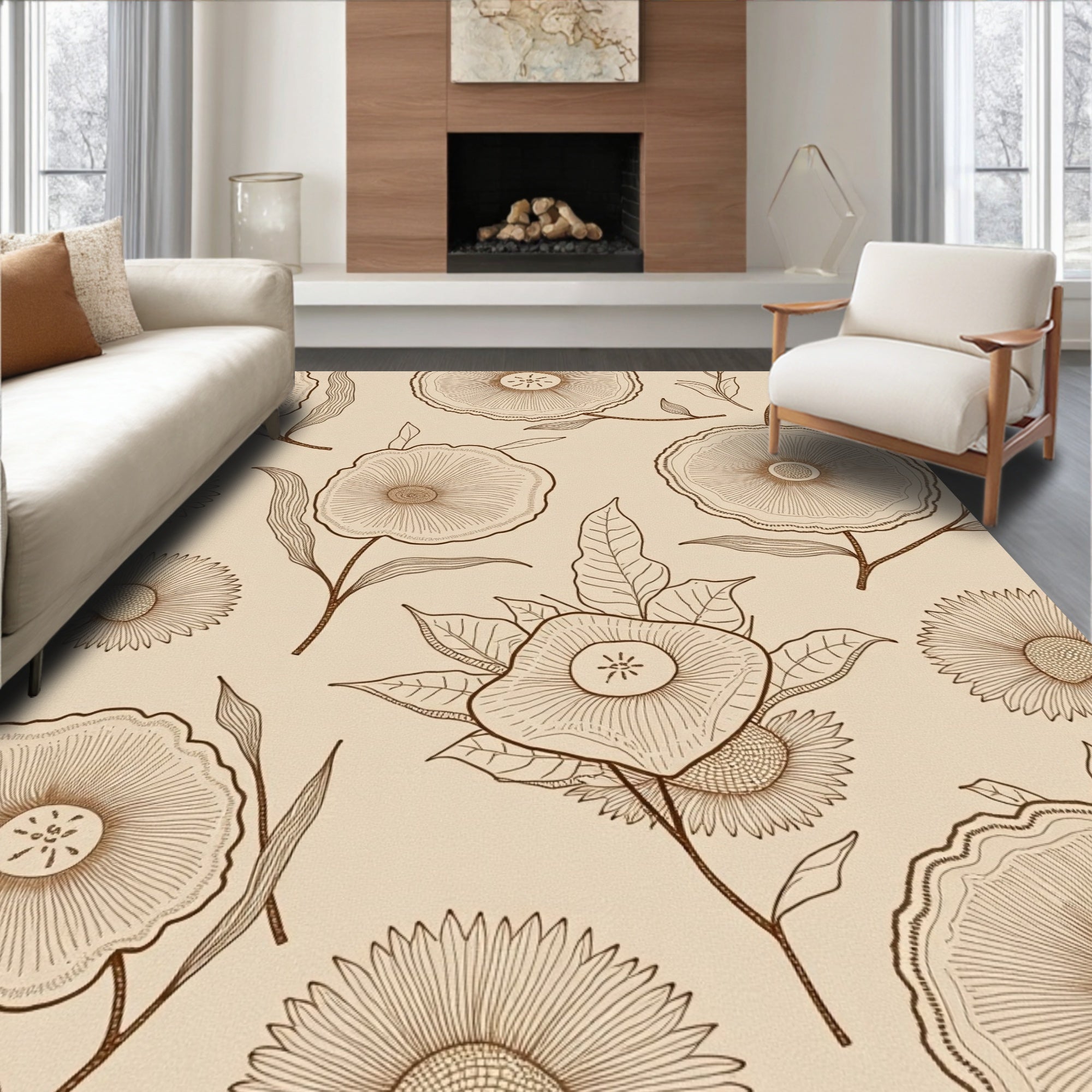 Botanical Distressed Floral Symmetrical(Beige)
