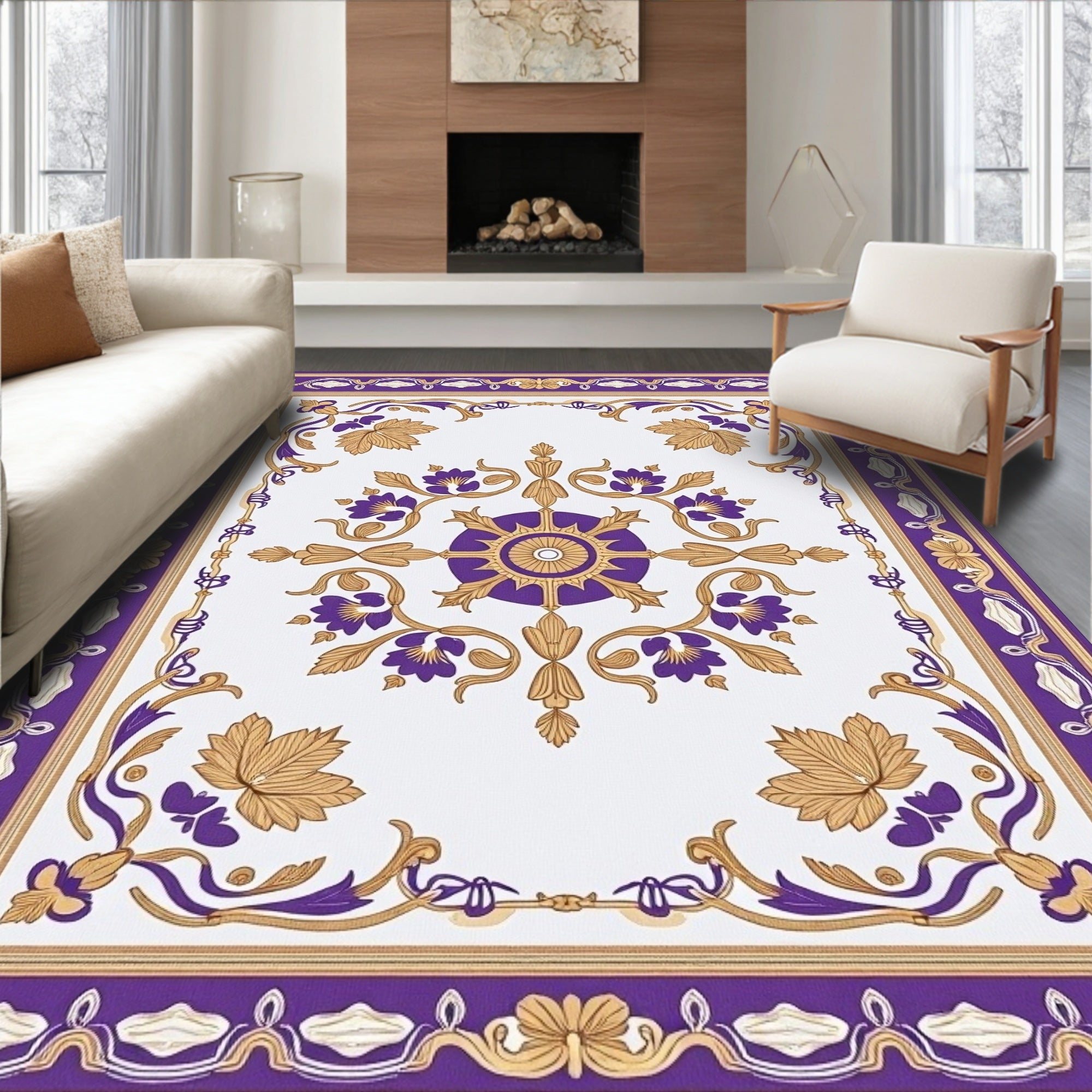 Floral Medallion Transitional Eclectic Luxury(Purple)
