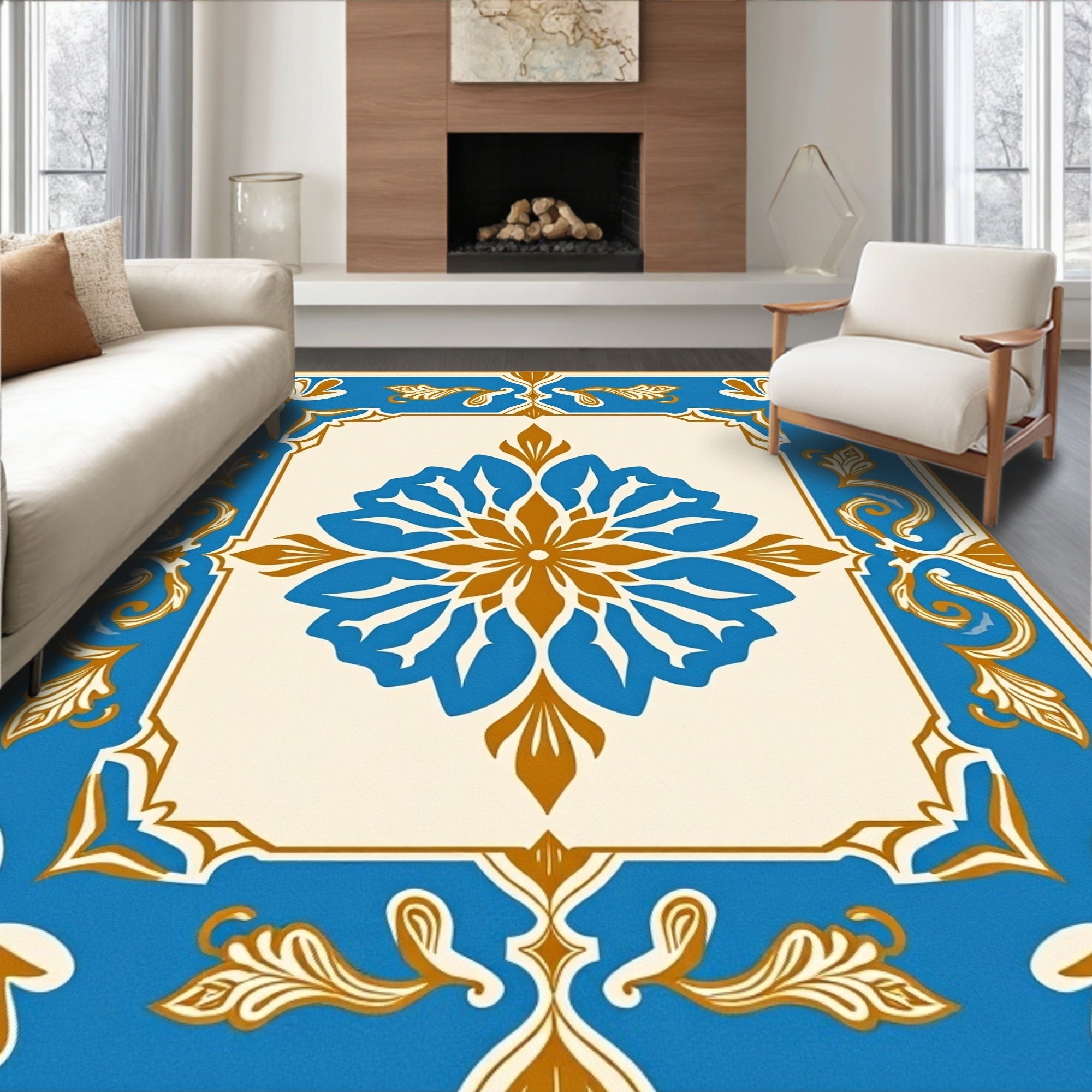 Vintage Botanical Medallion Ornate Floral Tapestry Heritage Artisan(Blue)