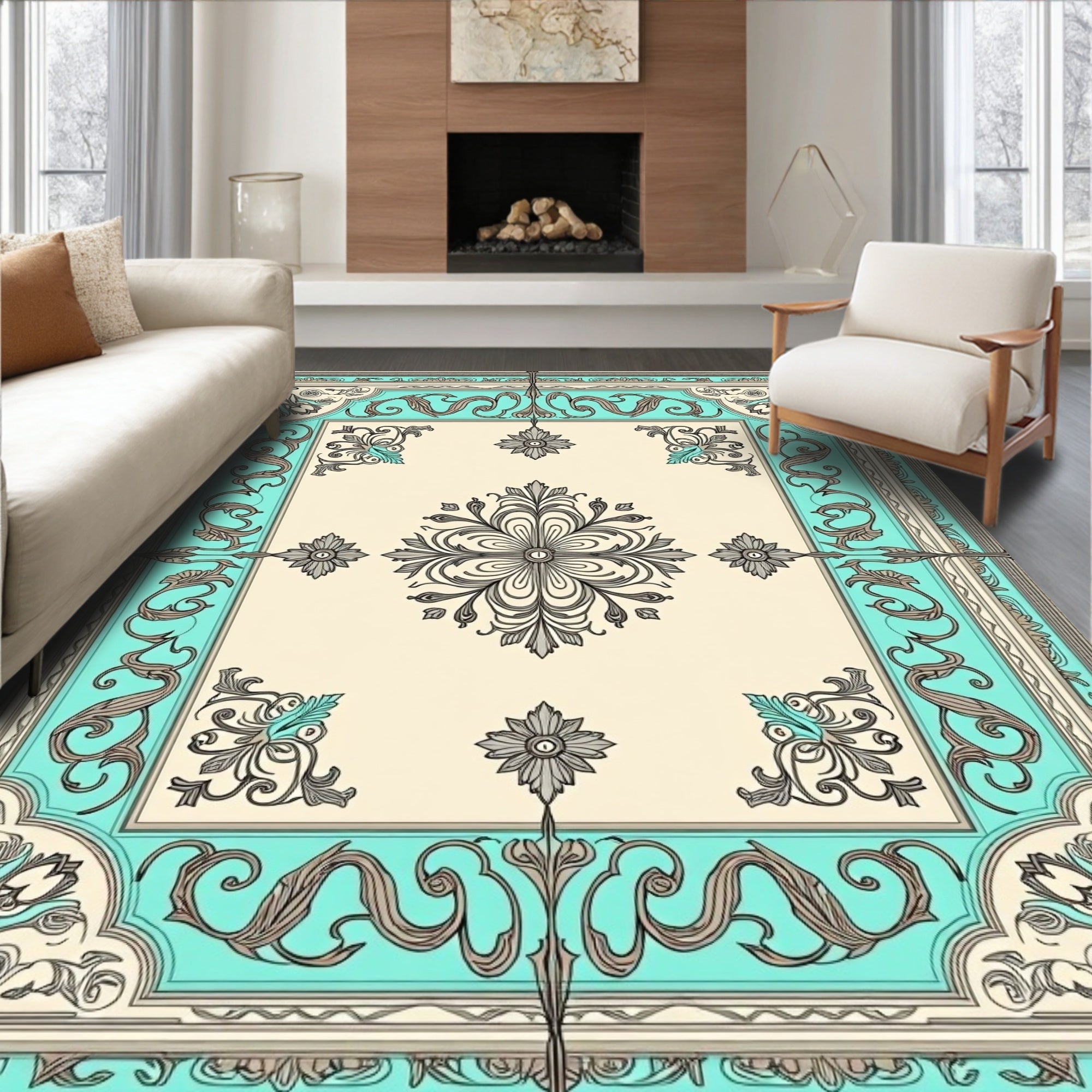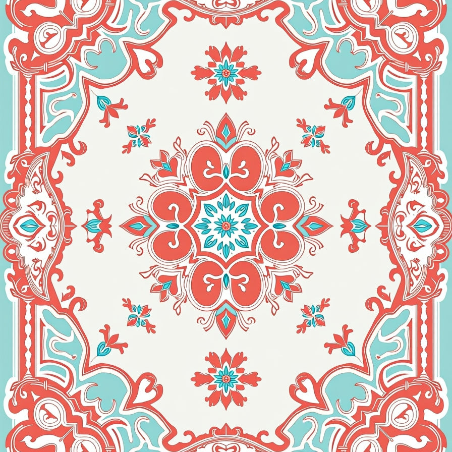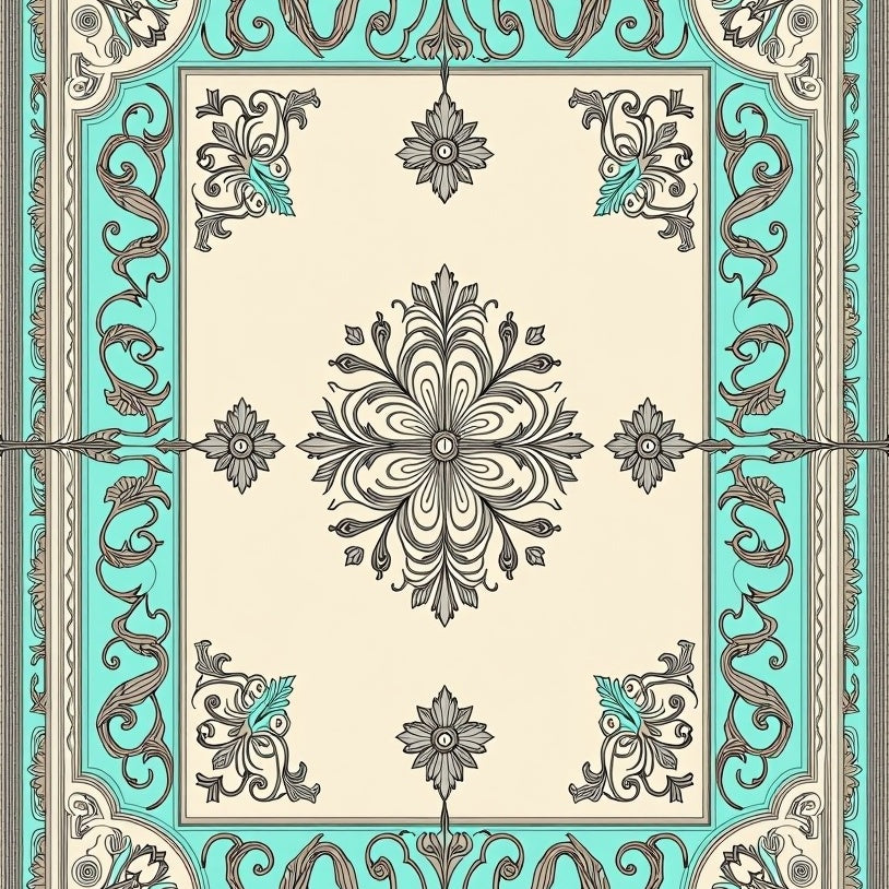 Ornate Medallion Scrollwork with Floral Trellis and Vintage Lattice Motifs(Turquoise)