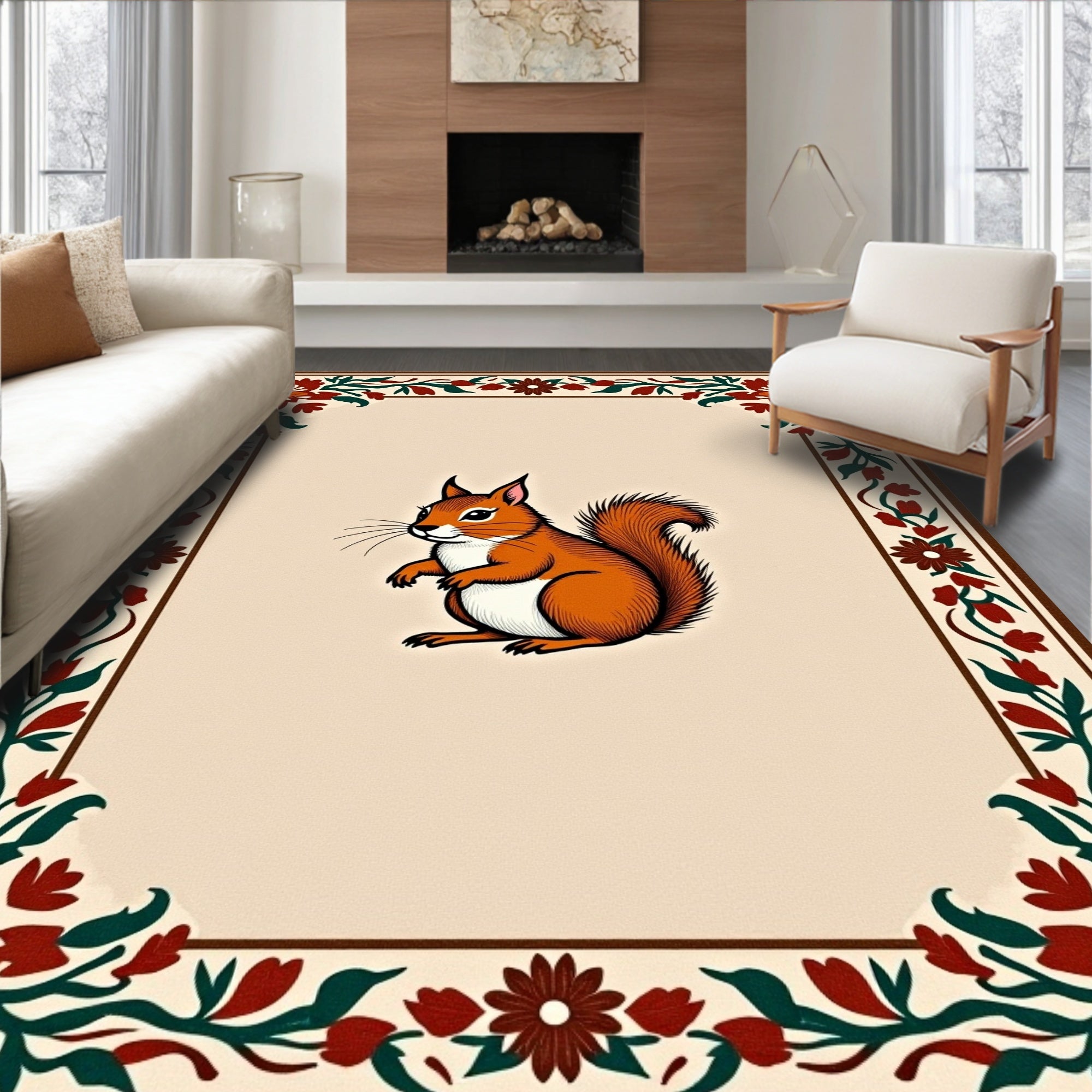 Vintage Woodland Squirrel Botanical Floral Circular Doormat(Beige)