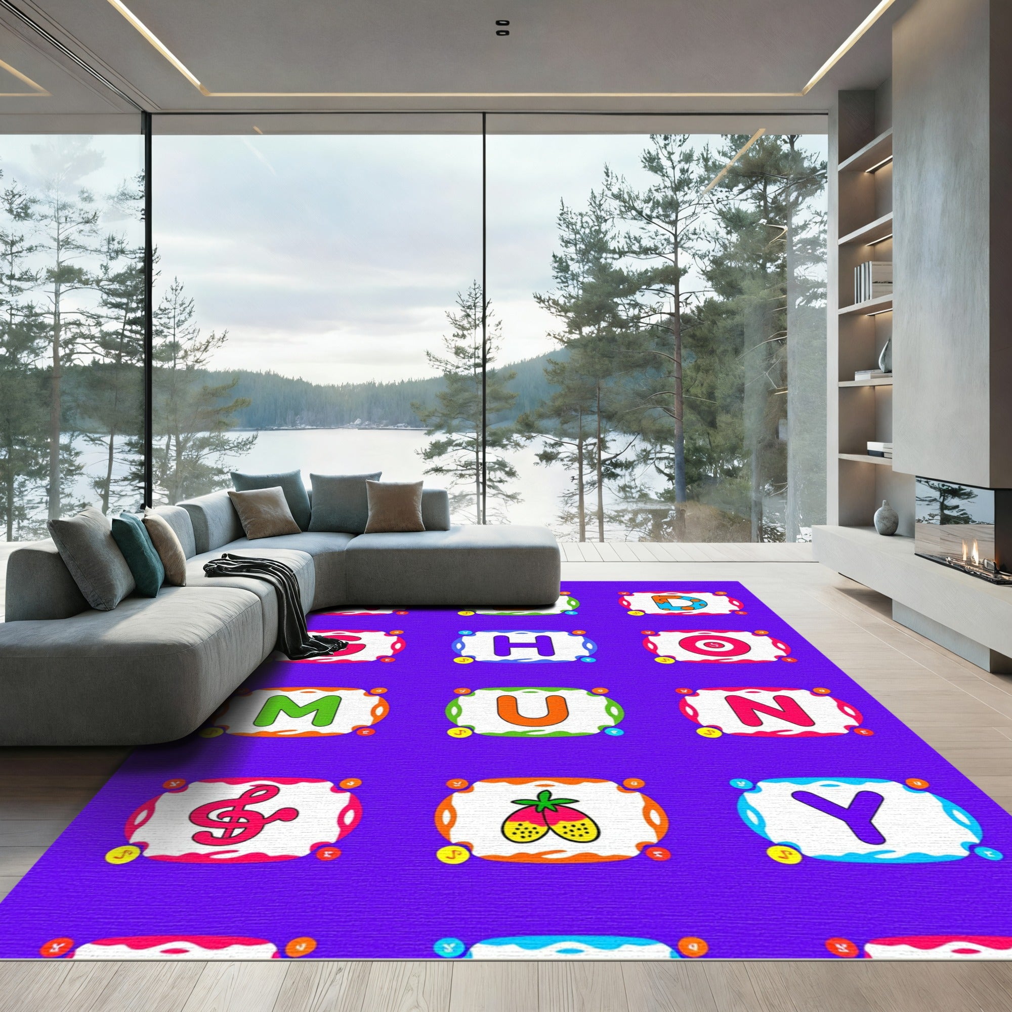 Bright Colorful Alphabet Letters Fruit Music Rug
