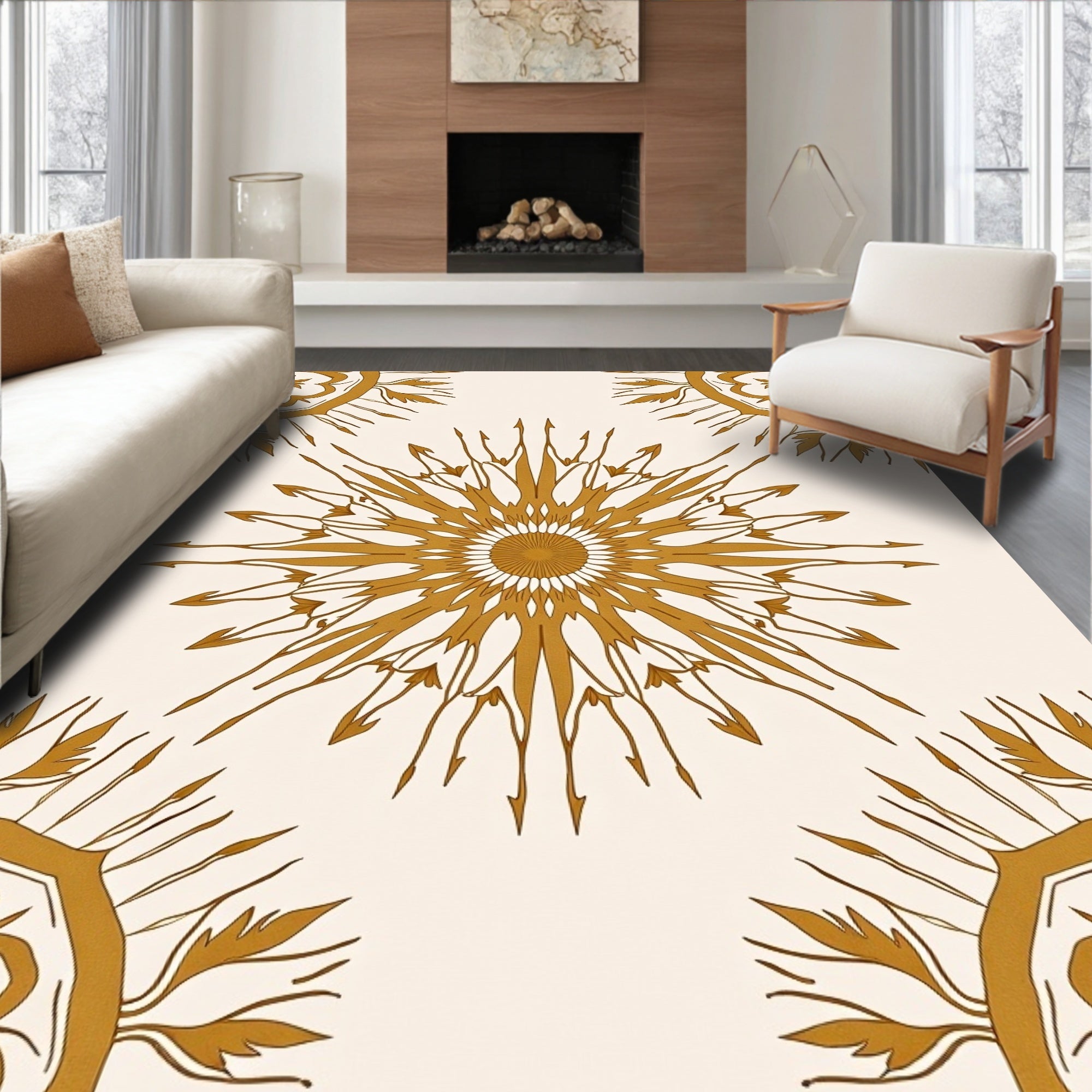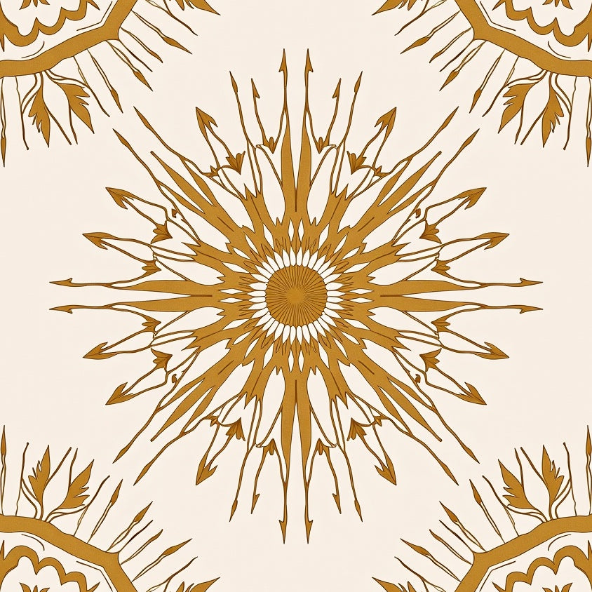 Sunburst Medallion with Radiant Petal Motifs and Artistic Flair (Gold)