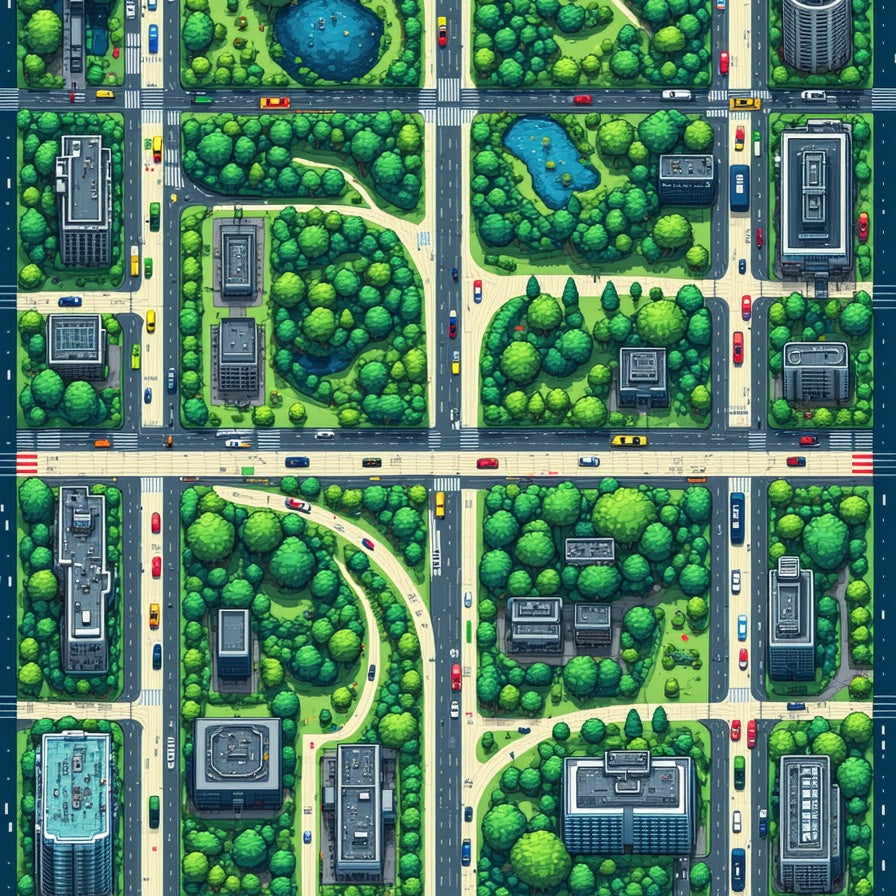 Vibrant Urban Landscape Motif(Green)