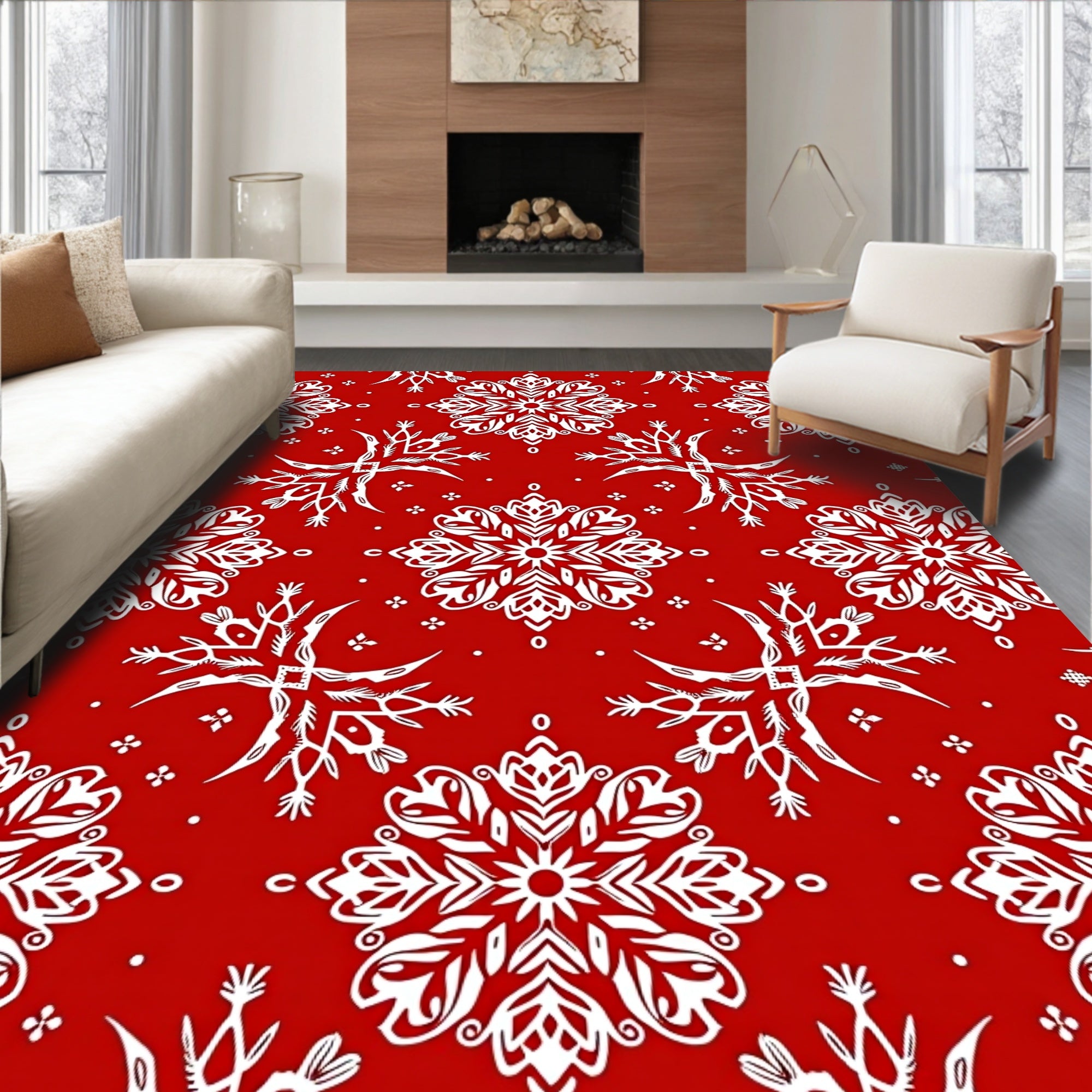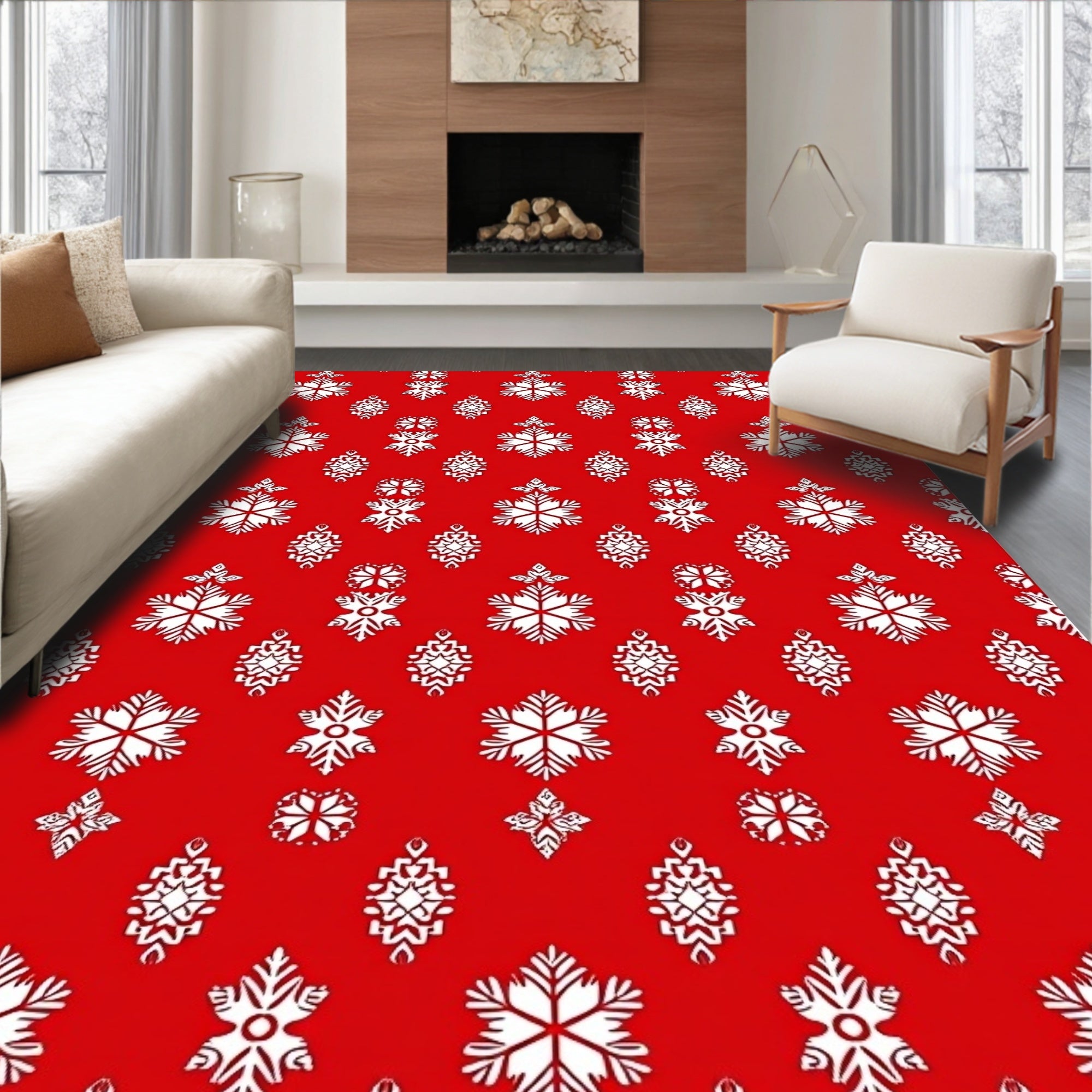 Festive Snowflake Winter Holiday Accent Doormat(Red)