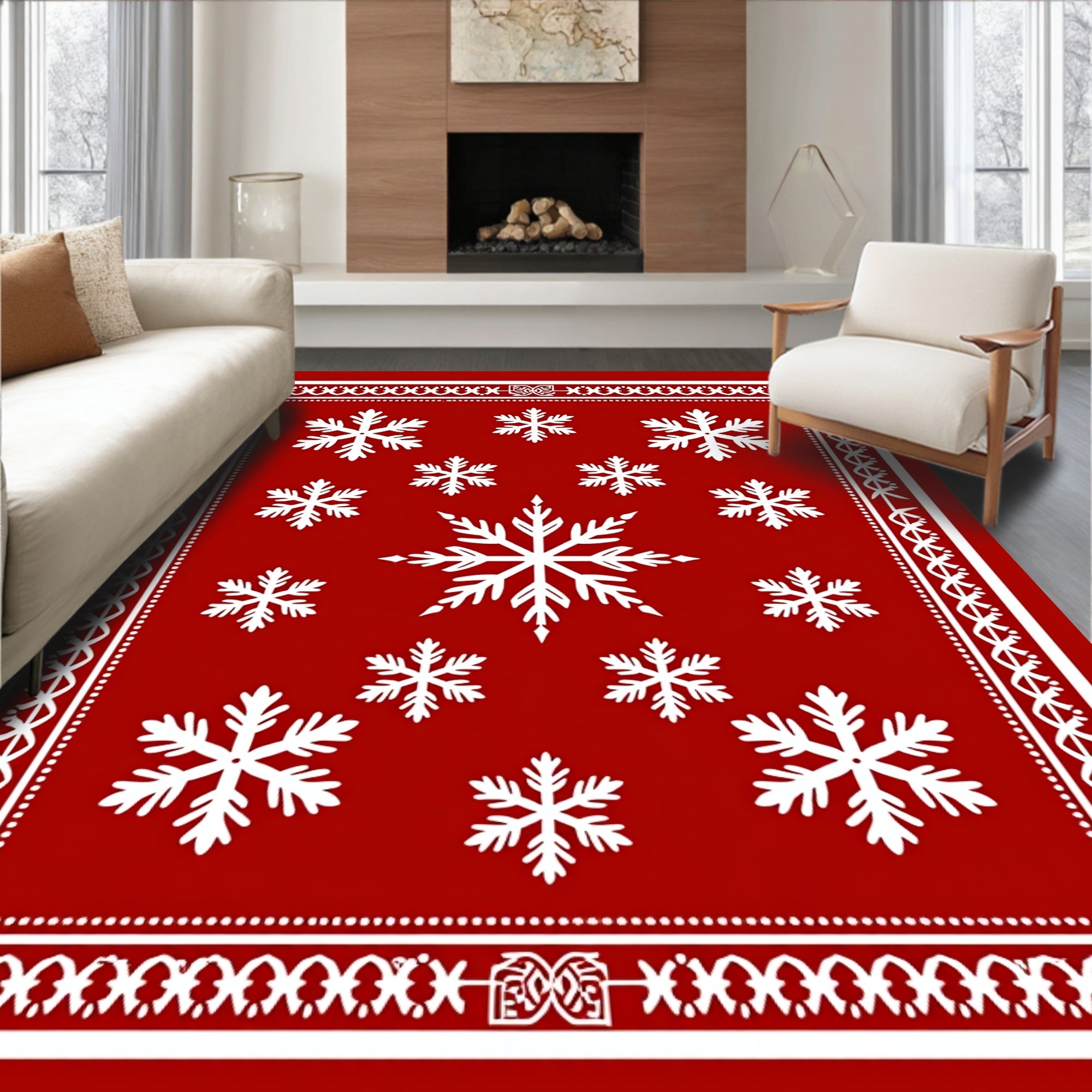 Festive Holiday Snowflake Doormat Entrance Welcome Yuletide(Red)