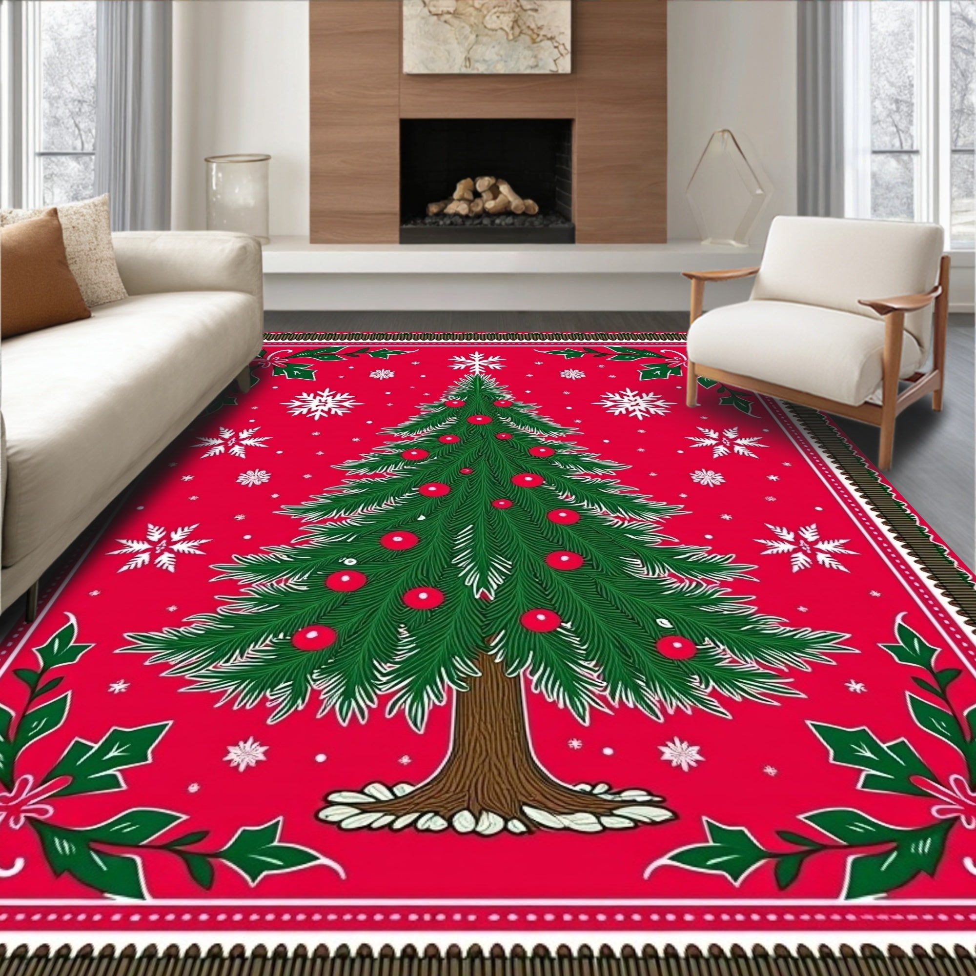Festive Tannenbaum Holiday Accent Doormat With Decorative Border(Red)