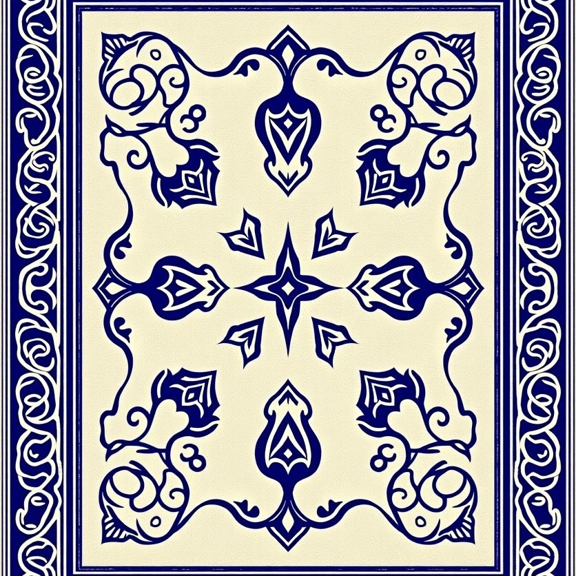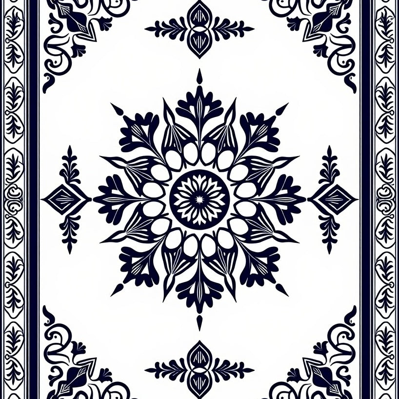 Vintage Medallion Pathway with Ornate Botanical Motifs(Blue)