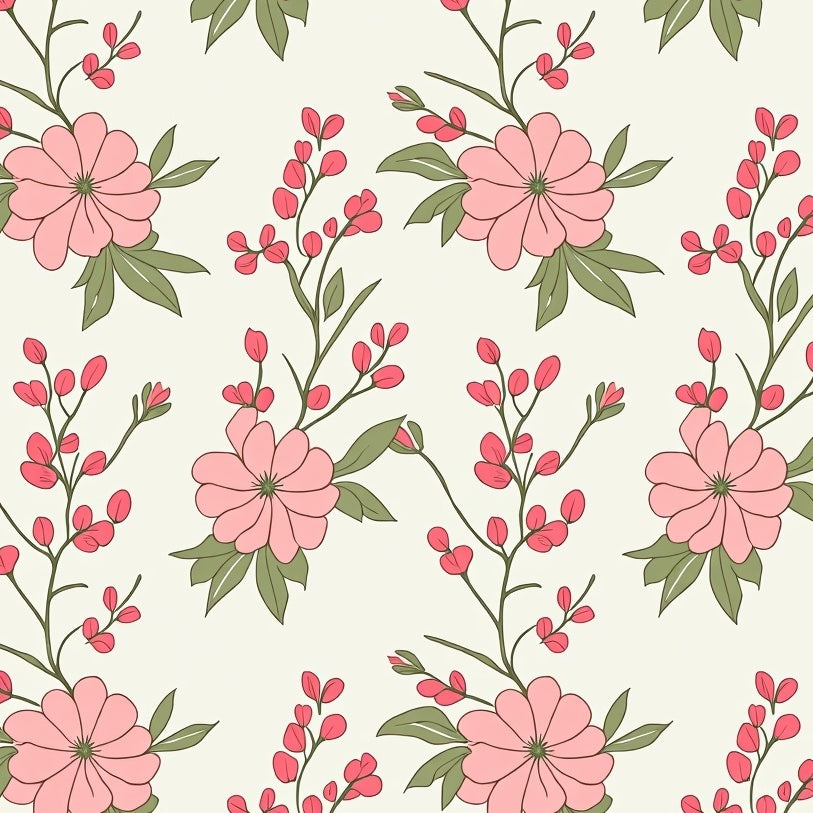 Whimsical Bud Cascade Charming Seasonal Illustration(Pink)