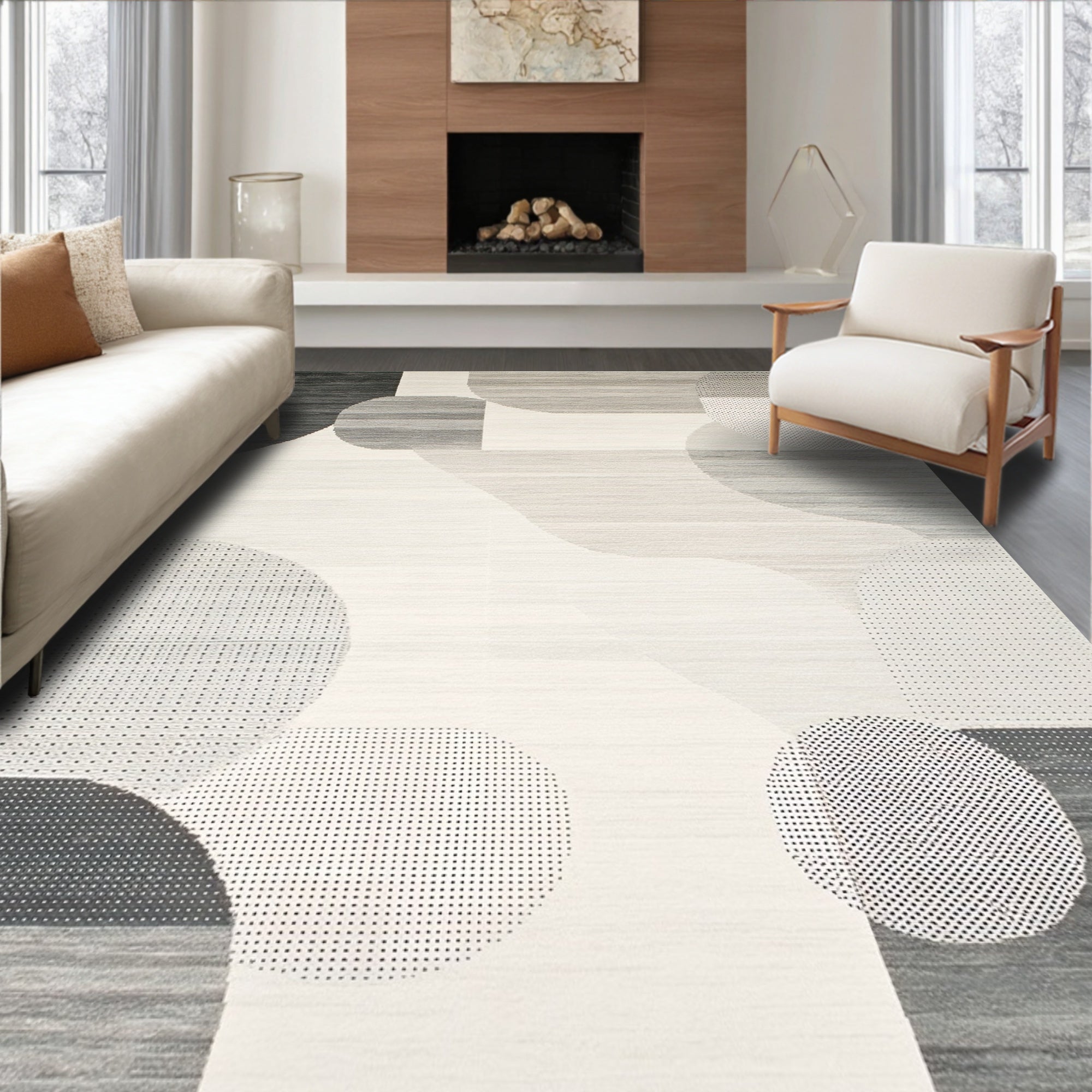 Modern Grey Beige Geometric Spotted Area for Contemporary Spaces(Gray)