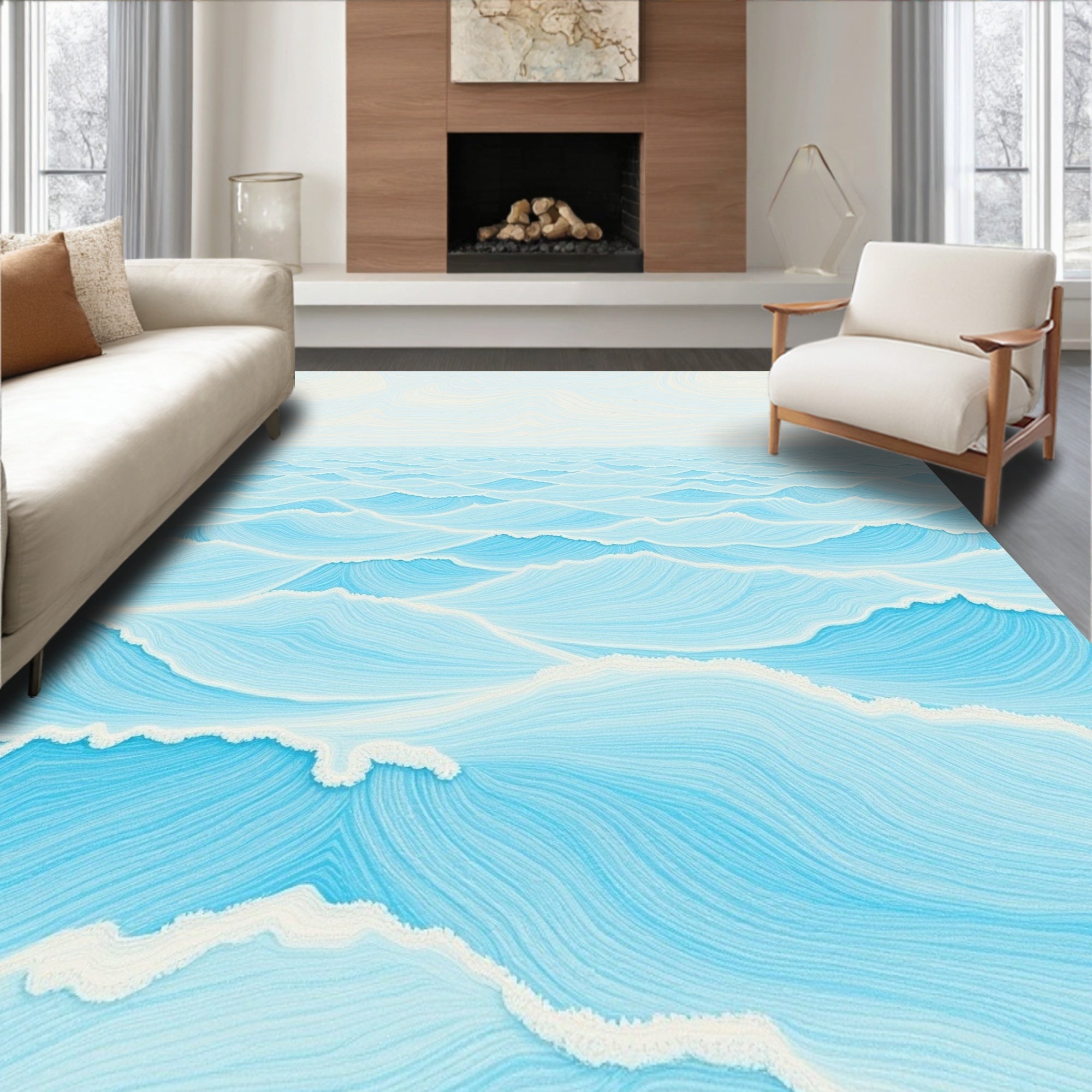 Tranquil Wave Horizon Decorative Graceful Symmetrical Motif(Blue)