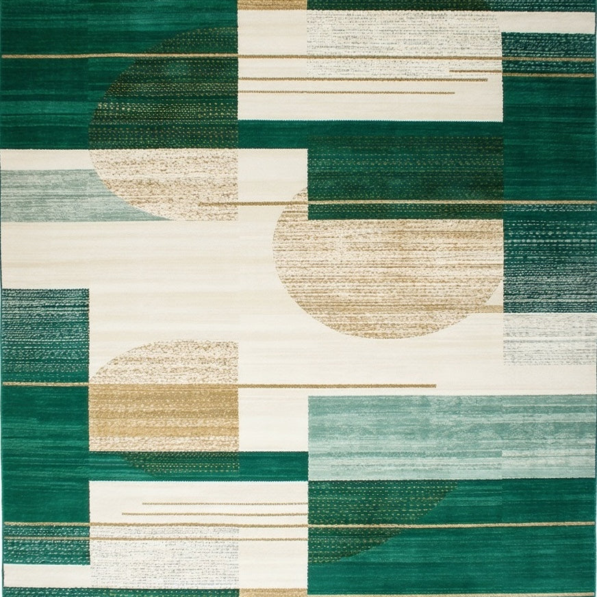Textured Beige With Abstract Shapes And Deep Green Highlights(Green)