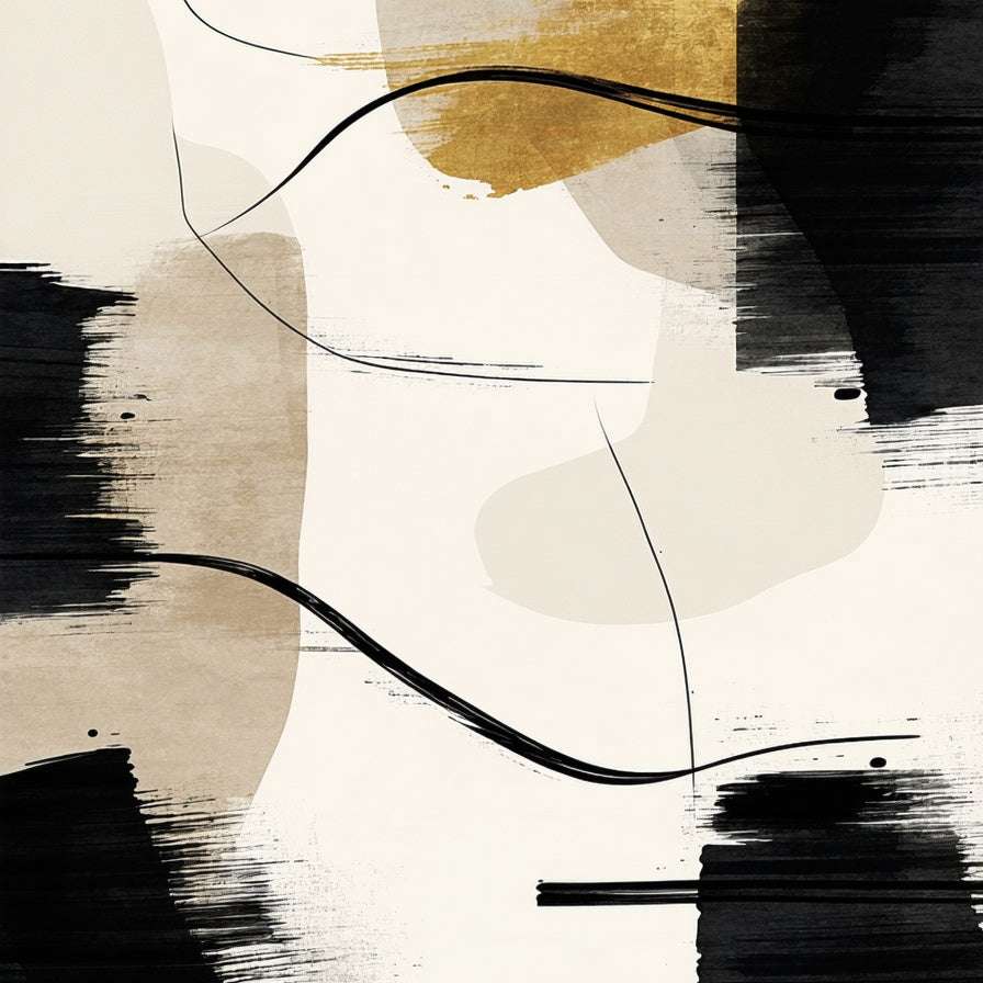 Beige with Abstract Black Brushstroke and Linear Accents(Beige)