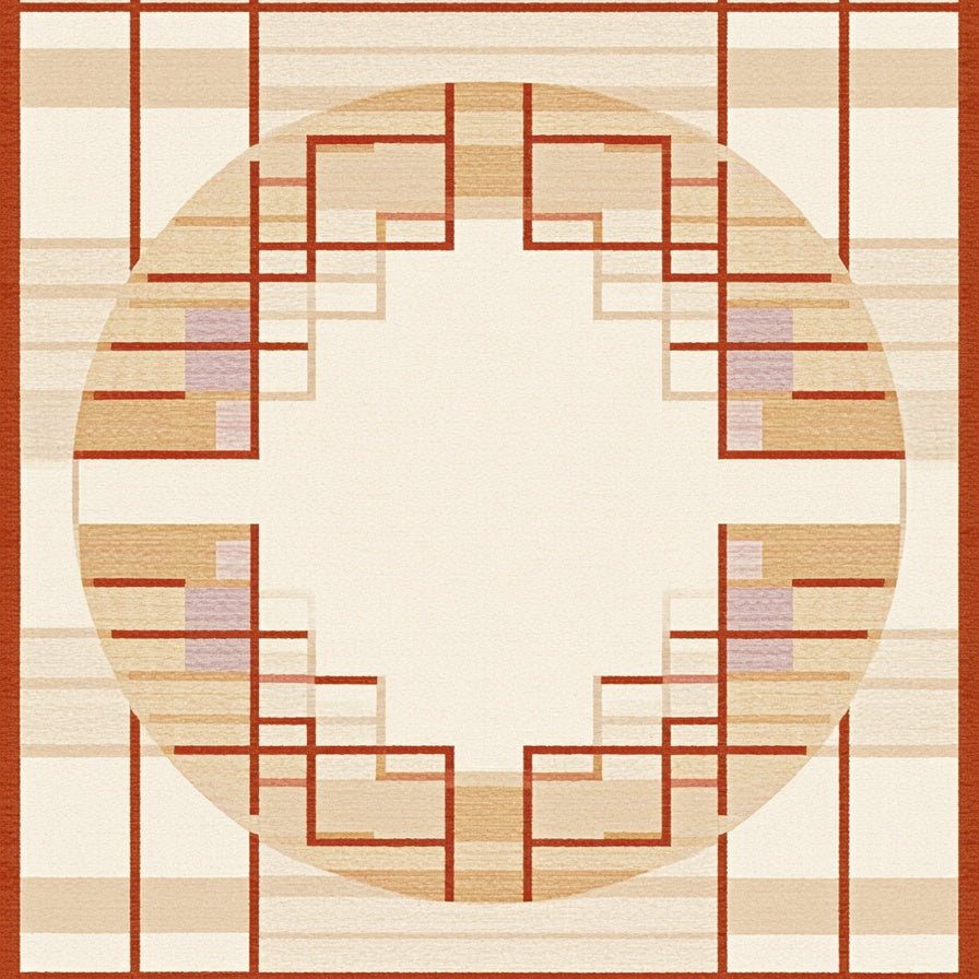 Chic Modern Area – Abstract Geometric Lines in Cream & Beige Tones(Beige)