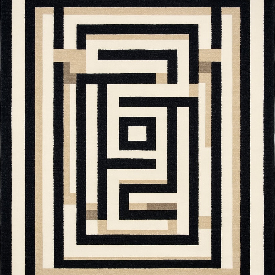 Contemporary Maze Inspired Featuring Interlocking Beige and Black Motifs(Black)