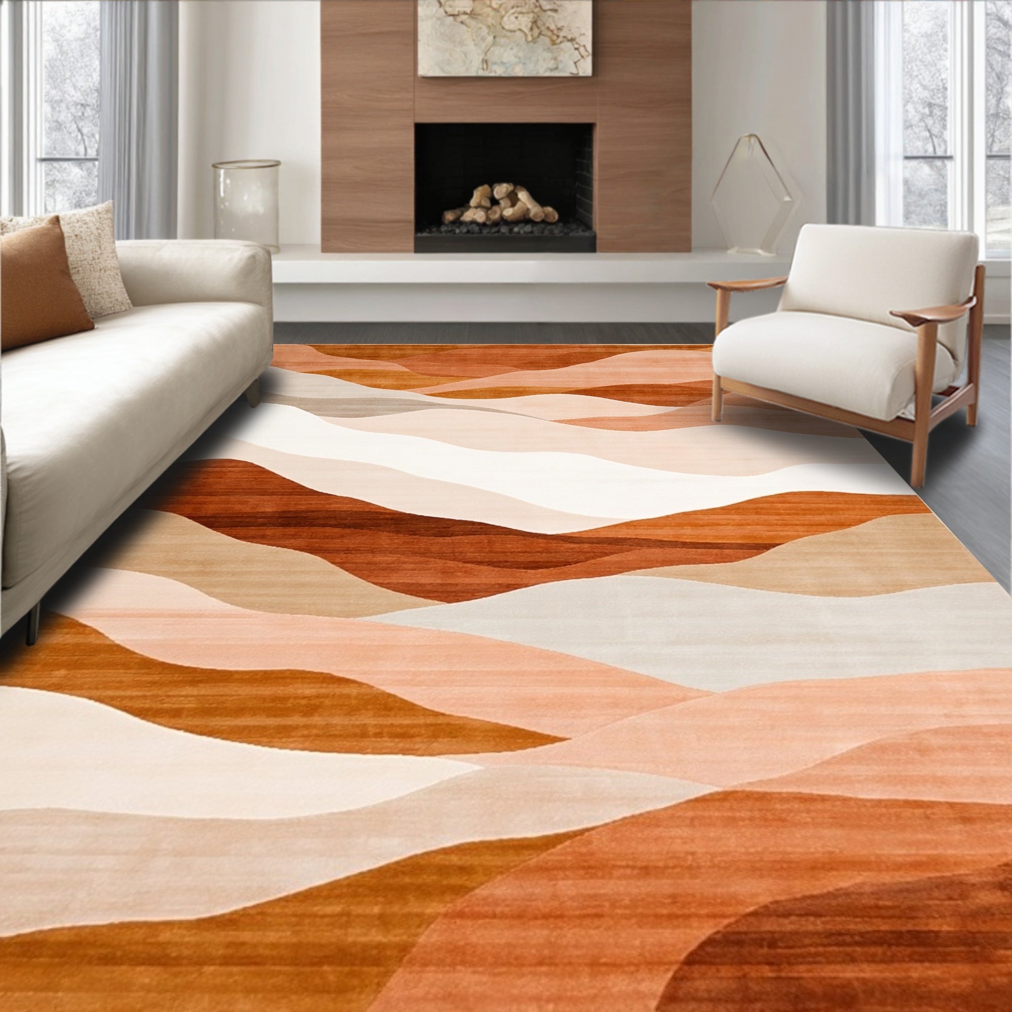 Cozy Cream Deluxe Area With Contemporary Abstract Wavy(Beige)