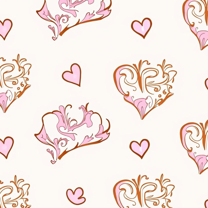 Romantic Hearts Flourish with Delicate Swirls Vintage Design(Pink)