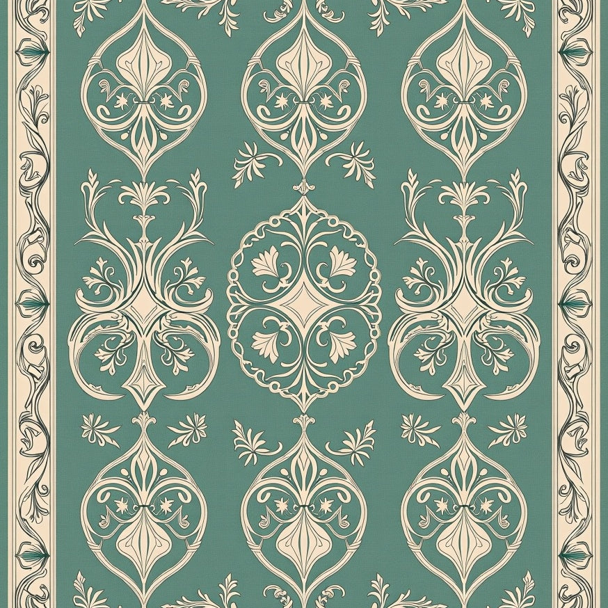 Damask Ornamental Scrollwork Floral Majesty(Green)