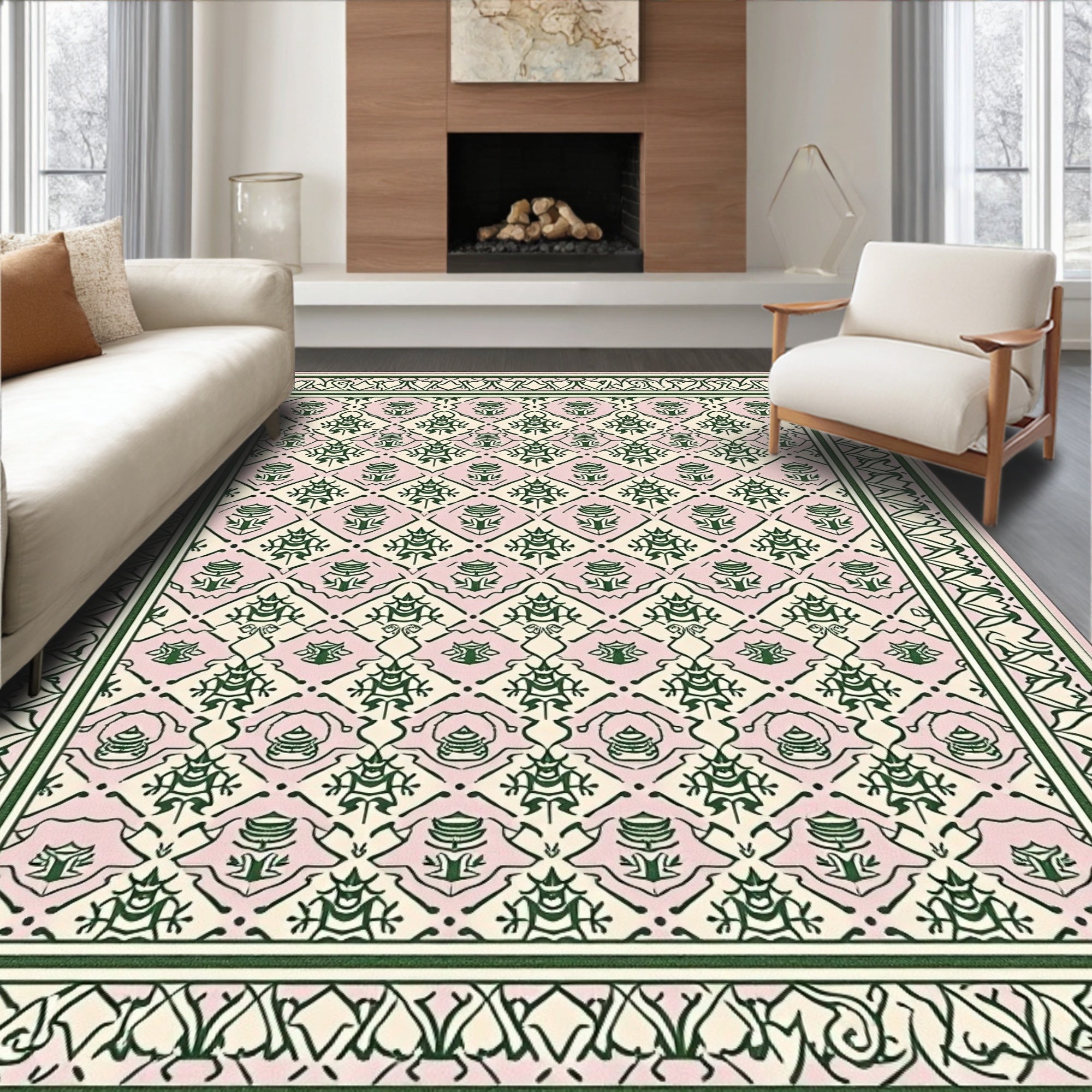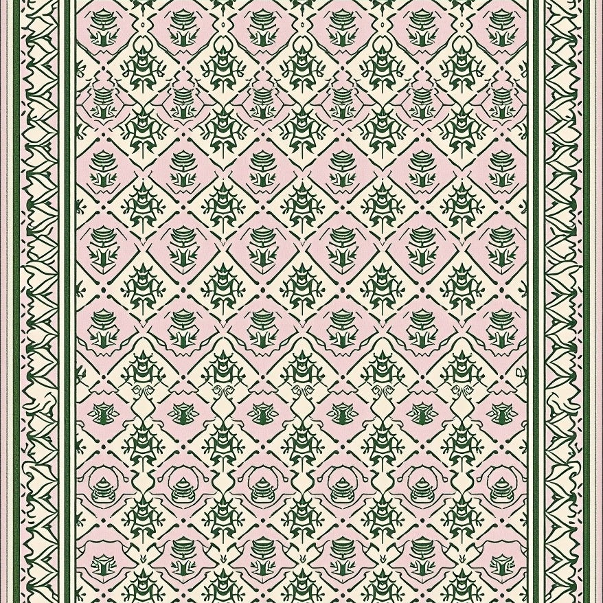 Nordic Pinecone Mosaic Featuring Interlocking Motifs(Pink)