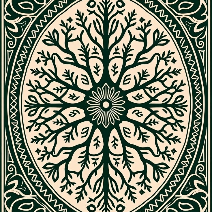 Festive Evergreen Spiral Motif With Ornate Starburst Accents(Green)