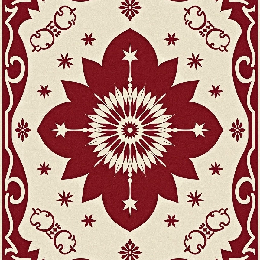 Abstract Floral Medallion Featuring Interlocking Petal Shapes and Swirls(Green)