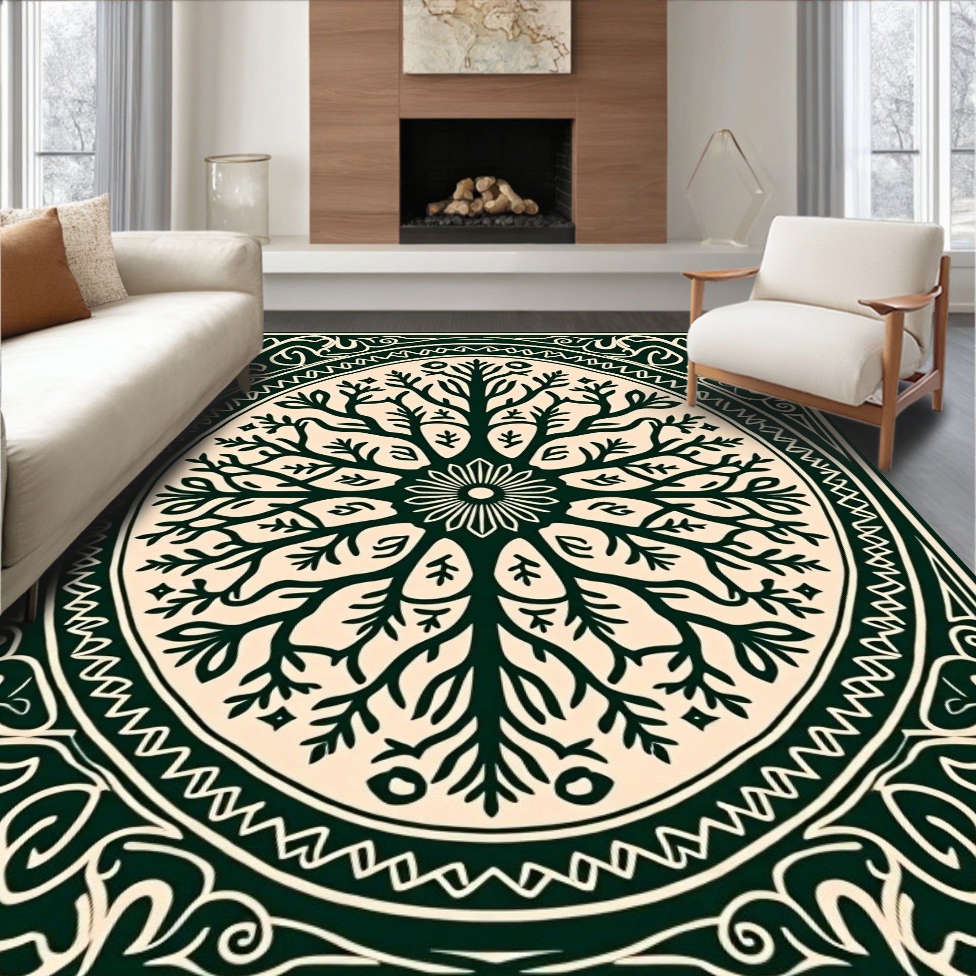 Enchanted Forest Area with Mystical Tree Motifs(Beige)