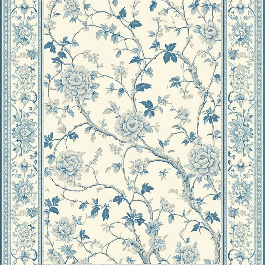 Blue and Beige Vintage Floral Medallion with Delicate Details(Ivory)