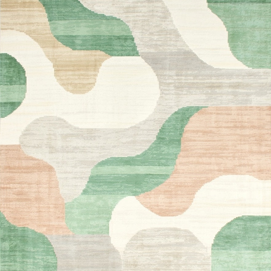 Contemporary Beige High Low Pile Abstracted Tilework(Beige)