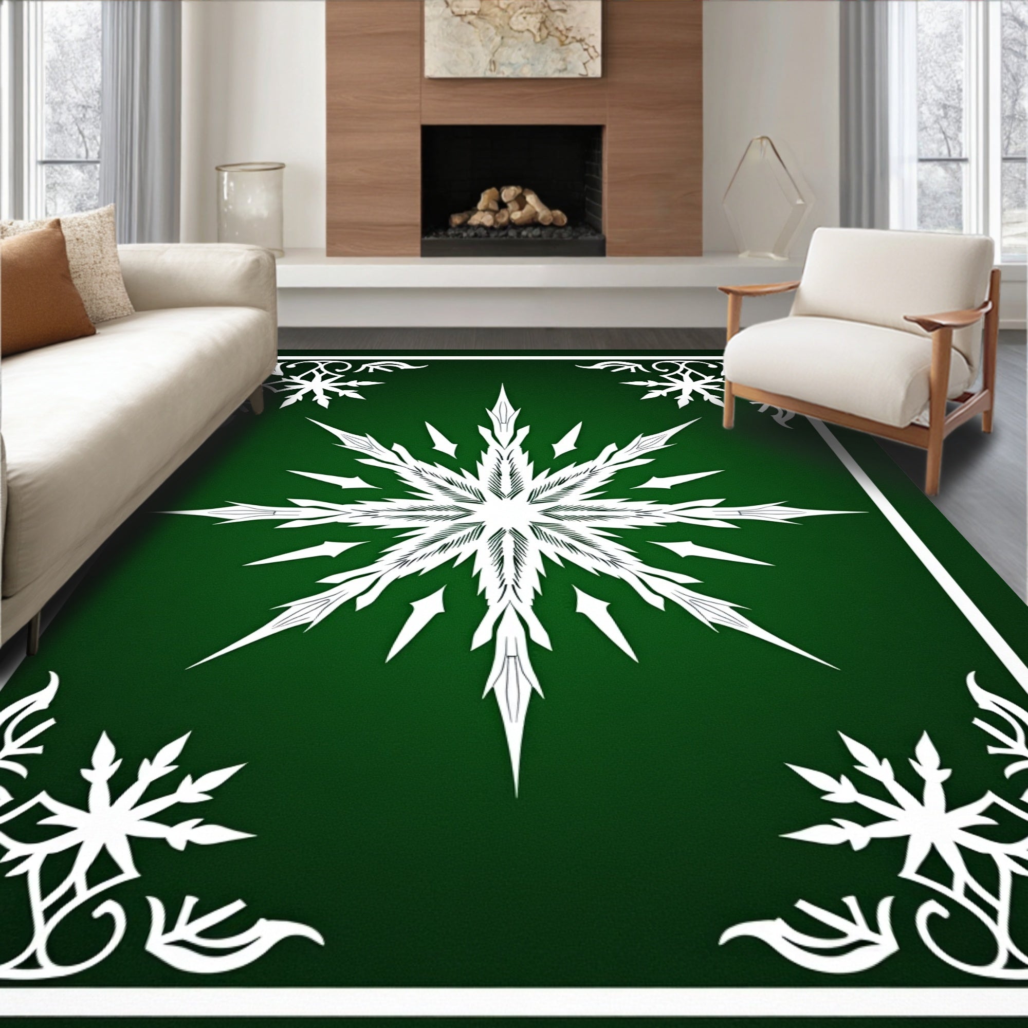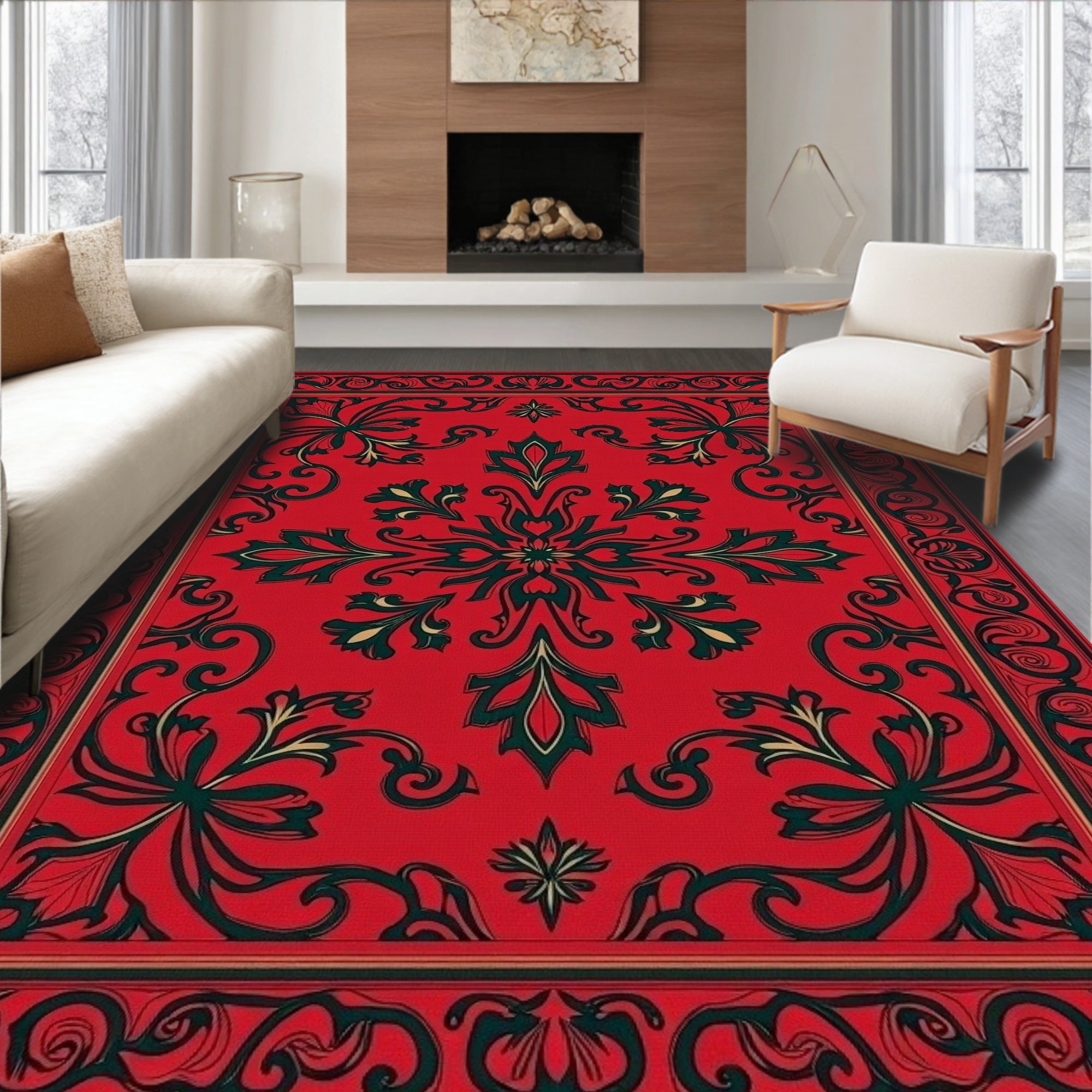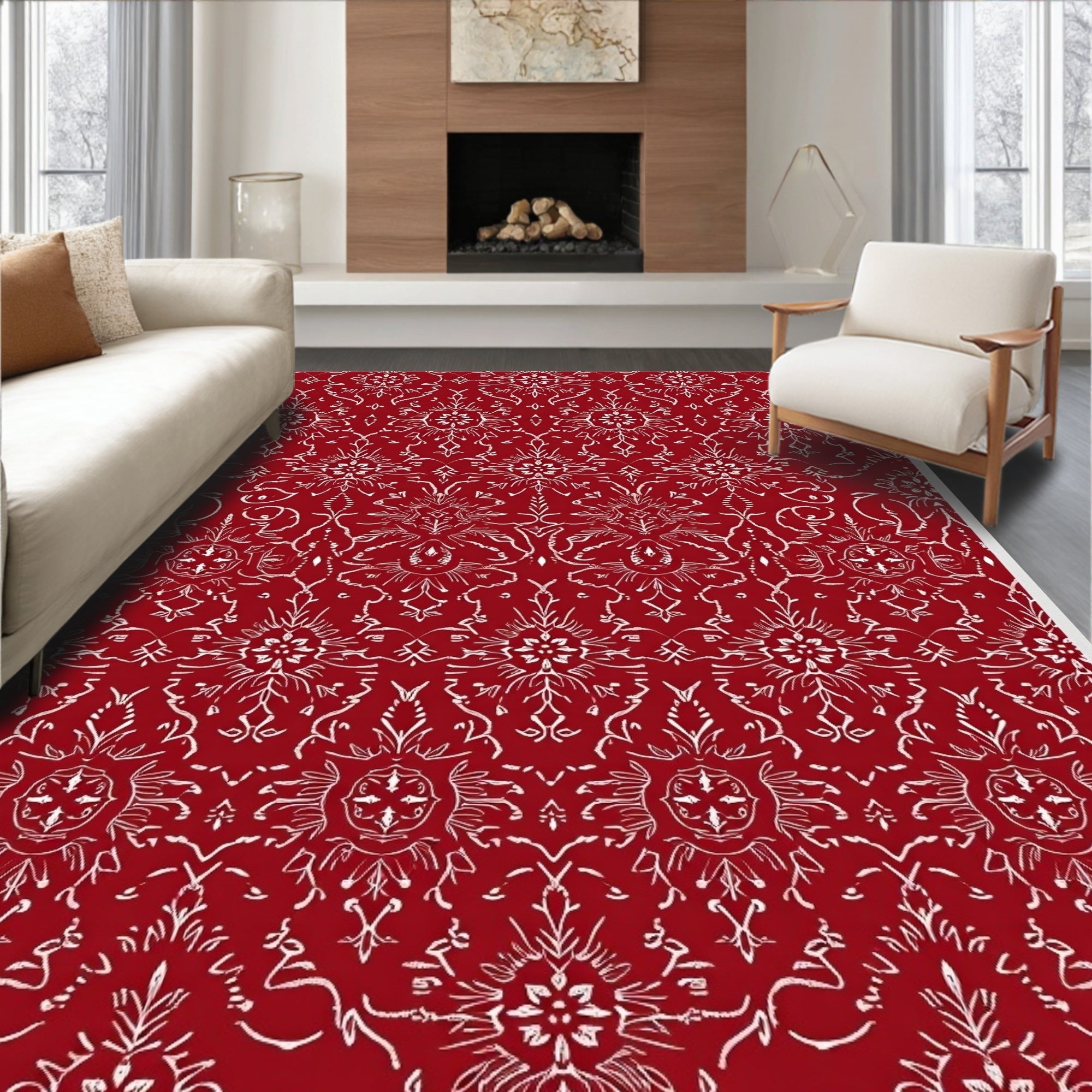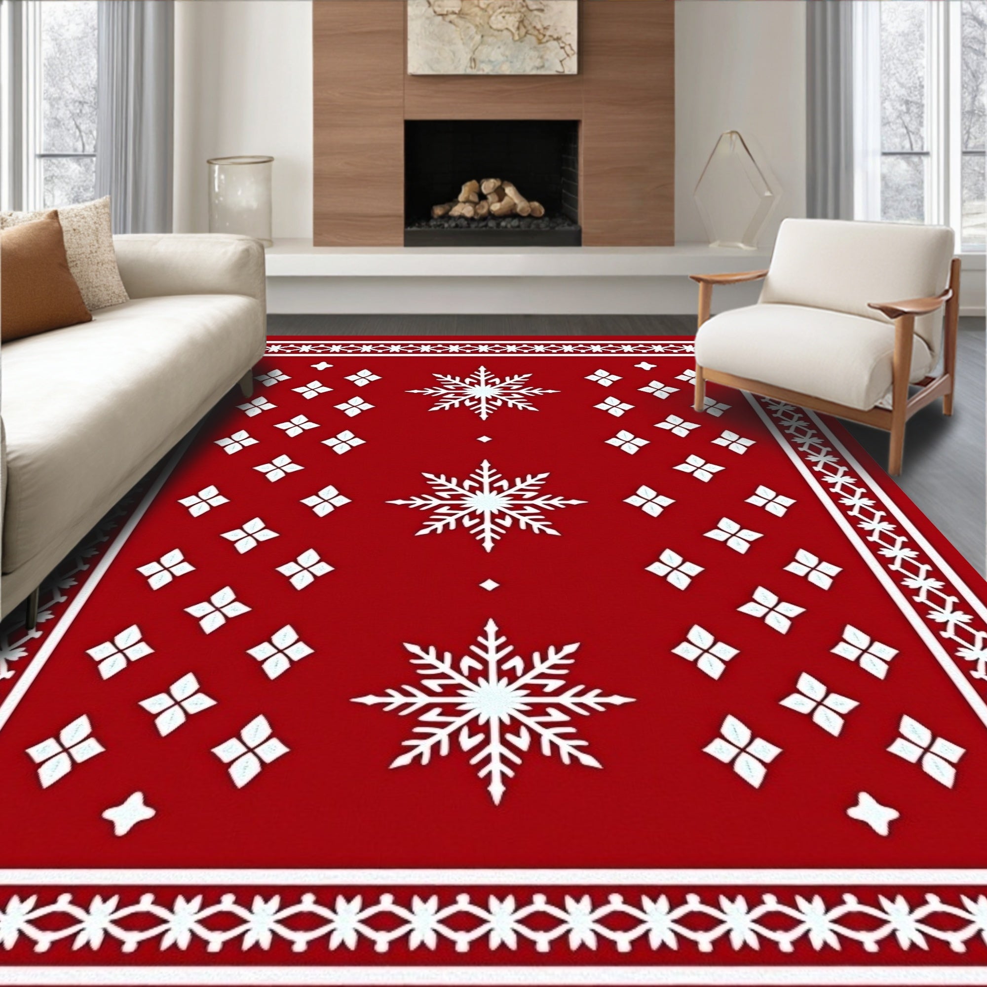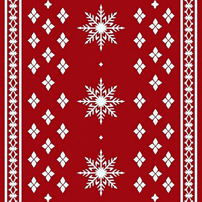 Nordic Winter Snowflake Motif with Festive Starburst Accents Interlocking Design(Red)