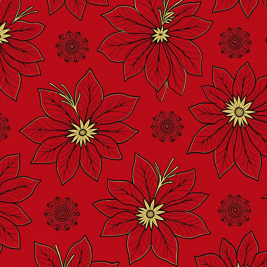 Ornate Poinsettia Bloom Design with Golden Accents(Red)